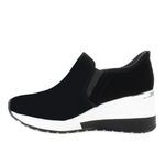 Nome: Tênis Slip On Via Marte e Meia VM23-231901. Gênero: Feminino. Indicado Para: Dia a dia. Estilo da Peça: Casual. Ocasião: Dia a dia. Material Externo: Nobuck. Material Interno: Têxtil. Ajuste: Elásticos laterais. Detalhe: Pin metalizado da marca na lateral. Palmilha: Anatômica forrada e macia. Tipo de Solado: Anabela. Altura do Solado: 6,5 cm. Peso do Produto: 733 g (o peso varia de acordo com a numeração). Garantia do Fabricante: Contra defeito de fabricação. Origem: Nacional. Código Produto: 02024524. Marca: Via Marte. Acompanha um par de meias tamanho 33 ao 38. Composição: 83 % Algodão. 12 % Poliéster. 05 % Elastodieno