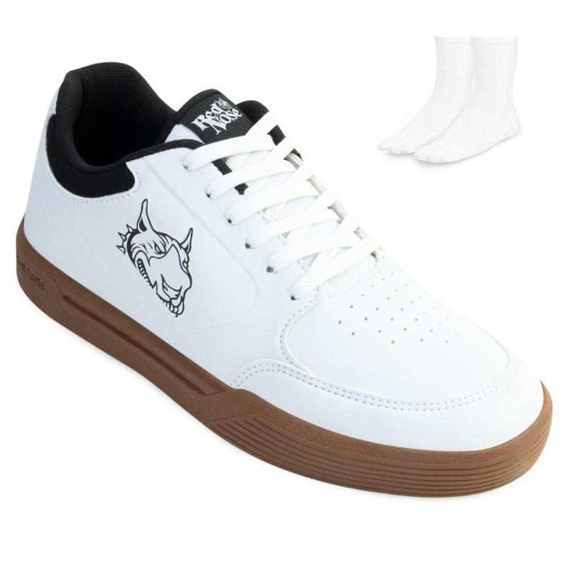 Nome: Tênis Street Red Nose e Meia RD22-RNAM803. Gênero:Masculino. Indicado Para: Dia a dia-Casual-Street. Estilo da Peça: Casual. Ocasião:Dia a dia. Material Externo: Lona com Logo. Fechamento: Cadarço. Palmilha:EVA removível. Solado: Borracha antiderrapante. Peso do Produto:996 g (o peso varia de acordo com a numeração). Garantia do Fabricante: Contra defeito de fabricação. Origem: Nacional. Código Produto:01024388. Marca:Red Nose. Acompanha um par de meias tamanho 37 ao 43. Composição: 83 % Algodão. 12 % Poliamida. 05 % Eslastodieno.