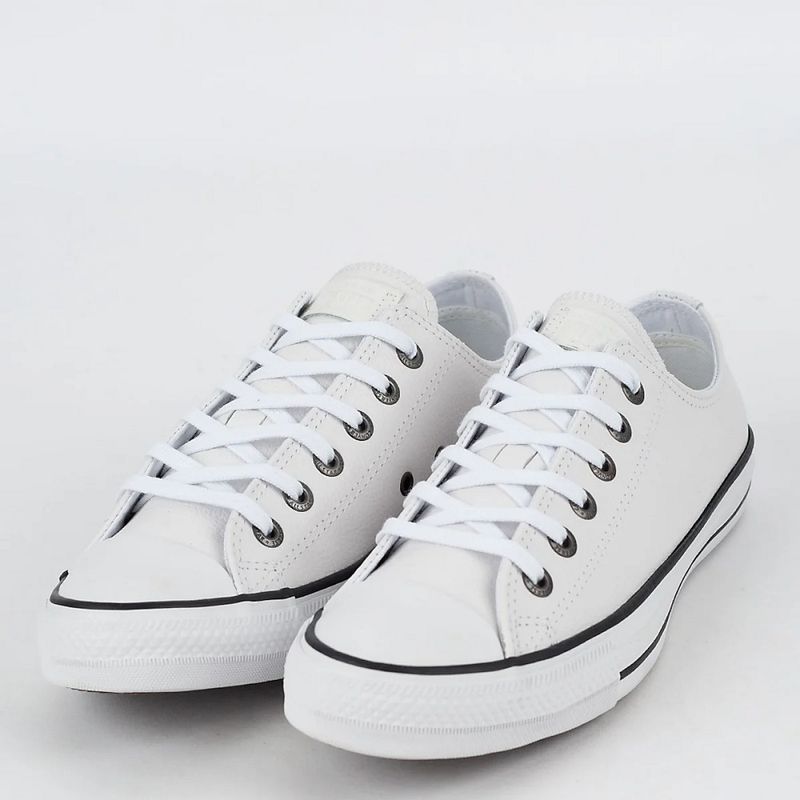 ÍCONE DO DIA A DIA. Você já conhece os detalhes que começaram na quadra de basquete - o clássico patch de estrela no tornozelo, a sola intermediária de borracha e a sola de diamante. Atualizamos o material com um couro macio e flexível, e finalizamos com uma palmilha em EVA para ajudar a mantê-lo confortável. Características e benefícios - Tênis cano baixo com parte superior de couro - Elemes de design tradicional, como biqueira de borracha, biqueira e listras na sola intermediária - Patch de tornozelo em estrela tricolor - Sola com padrão de diamante - Palmilha em EVA ajuda a mantê-lo confortável Confeccionado em couro, este é um dos modelos mais tradicionais da Converse. As costuras e os cadarços seguem a cor do cabedal. Os ilhoses personalizados contém as escritas Converse All Star aplicado em baixo relevo, exceto os dois laterais, responsáveis pela transpiração adequada dos pés. O logo Converse All Star é aplicado na parte superior da língua em couro envernizado na mesma cor do cabedal, e na tag traseira aplicada no calcanhar. A vira e o solado de borracha vulcanizada proporciona uma aderência perfeita ao caminhar.