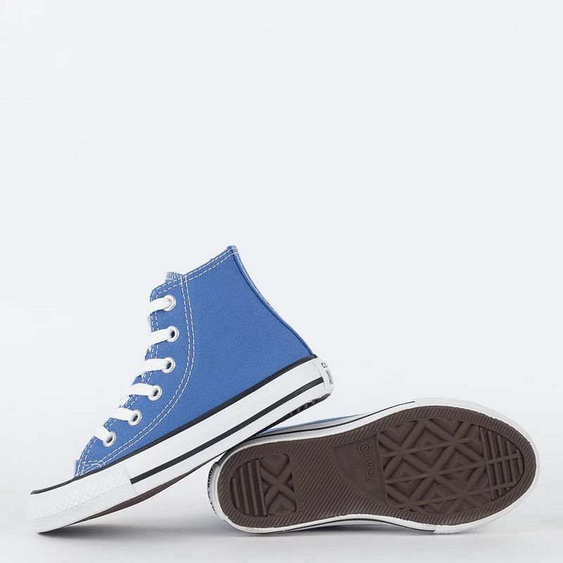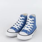 Desde 1917, o Chuck Taylor All Star tem sido o ícone do dia a dia. Você já conhece os detalhes icônicos como o cabedal em lona de algodão, solado com padrão de diamante e a indistinguível biqueira de borracha. Finalizado com palmilha em EVA para ajudar a manter os pés confortáveis. - Tênis em cano alto de lona de algodão - Silhueta icônica com biqueira de borracha - Clássico patch lateral com a estrela - Palmilha em EVA deixa seus pés confortáveis - Solado de borracha com padrão de diamante O clássico Chuck Taylor All Star na versão kids e em cores sazonais, é confeccionado em tecido canvas de algodão tipo lona, possui costuras duplas, ilhoses na cor prateada, uma tira de tecido no calcanhar que proporciona maior suporte ao tênis, forro interno acolchoado para maior conforto e dois ilhoses laterais para uma transpiração adequada aos pés. O Patch Logo com assinatura Converse Chuck Taylor All Star é aplicado na parte interna dos canos, enquanto o logo Converse All Star é aplicado na heeltab do calcanhar. O solado vulcanizado garante a aderência adequada ao caminhar. ATENÇÃO! Sugerimos comprar o número MENOR A quantidade de passadores (ilhoses) pode variar conforme o tamanho do produto. As cores do produto podem sofrer alterações conforme a calibragem de cada monitor/tela. Medidas: Tamanho 26 - Comprimento 18,8cm Tamanho 27 - Comprimento 19,6cm Tamanho 28 - Comprimento 20,0cm Tamanho 29 - Comprimento 20,9cm Tamanho 30 - Comprimento 21,3cm Tamanho 31 - Comprimento 22,1cm Tamanho 32 - Comprimento 22,5cm Tamanho 33 - Comprimento 23,3cm