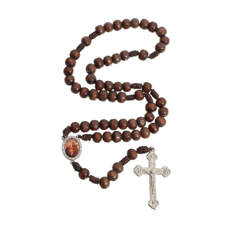 Terço da Sagrada Família de Madeira - Marrom EscuroTerço com contas em madeira na cor marrom escuro, medalha na cor prata com imagem da Sagrada Família em resina colorida e crucifixo em metal prata.Especificações:Contas: 8mm diâmetroEntremeio: 8mm diâmetroMedalha: 2,1cm altura x 1,4cm larguraCrucifixo: 4,5cm altura x 2,8cm larguraComprimento da peça: 37cm***Medidas aproximadas***