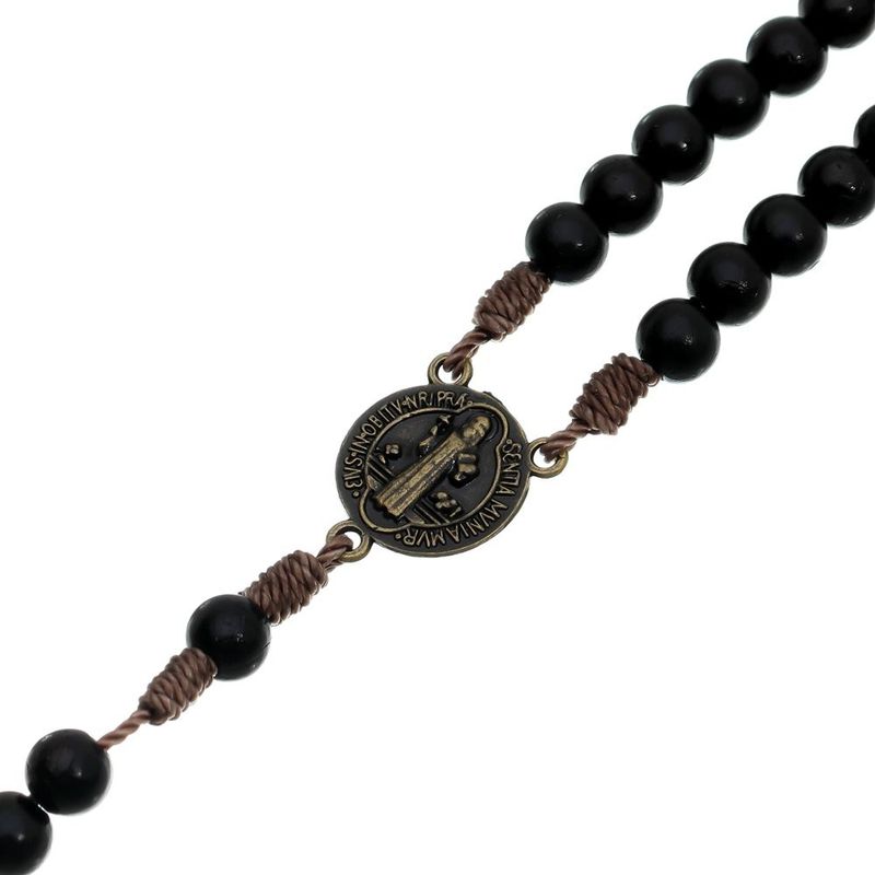 Terço de São Bento Pérola - Preto Esse terço de São Bento possui contas e entremeios de pérola metalizada na cor preta, sendo confeccionado com barbante no mesmo tom. A medalha de São Bento é prata, tem as imagens e inscrições gravadas em alto relevo, assim como o crucifixo. Perfeito para quem é devoto de São Bento e ama rezar o Terço!Bento nasceu no ano de 480 na Itália, numa província chamada Núrsia. Teve sólida formação cristã. Foi enviado pelos pais para estudar em Roma. Mas, o jovem não se adaptou, pois buscava uma vida com maior significado e profundidade religiosa.Então, renunciou aos estudos e isolou-se em uma gruta, no penhasco de Subiaco, local de difícil acesso. Lá viveu em oração e meditação durante três anos.Com o tempo, foi procurado por diversas pessoas que queriam viver o mesmo estilo de vida. Em pouco tempo, Bento construiu 12 mosteiros, um inclusive no alto de Monte Cassino, ao sul da Itália.Após muito estudo, Bento elaborou a sua própria regra, que serviria de norma geral para os monges. Seu lema principal foi: "Ora et labora", ou seja, reza e trabalha. Para ele, a vida consiste basicamente na oração e no trabalho, principalmente nos mosteiros.Bento teve uma vida santa. Curou enfermos, operou vários milagres e fez duras penitências. Que esse terço com pérolas azuis de São Bento seja sinal de fé e instrumento de oração para muitos cristãos! Peça já o seu e conte com a intercessão do santo na sua caminhada espiritual!EspecificaçõesConta: 6mm de diâmetroEntremeio: 6mm de diâmetroCrucifixo: 3,9cm de altura x 2,1cm largura x 0,4cm de espessuraComprimento da peça: 30,5cm***Medidas aproximadas***Conta: 8mm de diâmetroMedalha: 1,7cm de diâmetroCrucifixo: 5,1cm x 3,2cmComprimento da peça: 39,4cm***Medidas aproximadas***