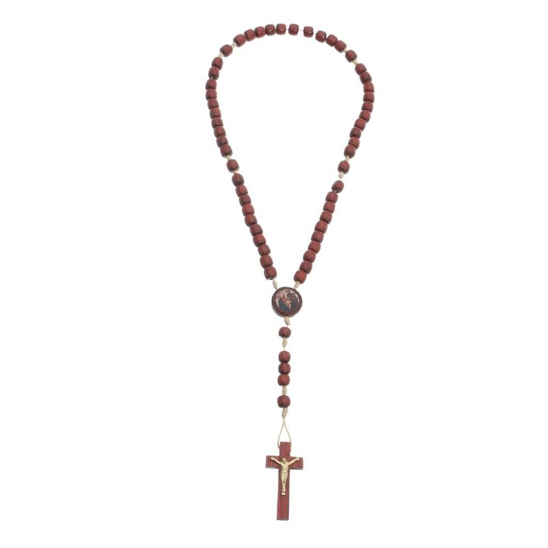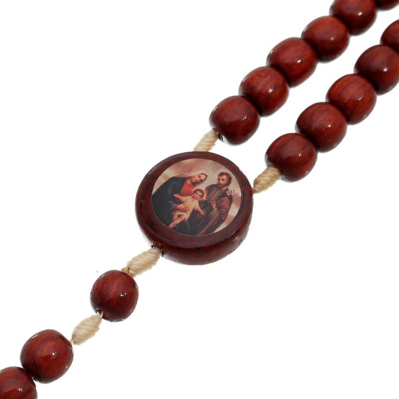 Terço Sagrada Família Madeira Pau Brasil 8mmEsse lindo terço da Sagrada Família é feito com madeira Pau Brasil. O verniz torna a peça brilhante e ainda mais bonita. O Cristo fixado no crucifixo é de metal dourado. A imagem da Família de Nazaré na medalha é colorida. O barbante na cor creme completa a peça, que é produzida com materiais de alto padrão.Ao adquirir esse terço de madeira Pau Brasil, você estará levando para sua vida um artigo religioso de muito bom gosto e prático para os seus momentos de oração. É perfeito para rezar o Terço em família, colocando a todos sob a proteção da Sagrada Família!No século XIII, quando São Domingos lutava contra a heresia, já desesperado, foi a um bosque para suplicar auxílio divino. Depois de três dias de oração, Nossa Senhora apareceu a ele e disse que a melhor arma da Santíssima Trindade para transformar o mundo era rezar o Rosário. A oração do Rosário e/ou do Terço continuam mudando vidas de quem reza e por quem se reza. “De todas as orações, o Terço é a mais bela e a mais rica em graças; é a oração que mais toca o coração da mãe de Deus! Se você deseja que a paz reine em sua casa, reze o Terço em família” (Papa São Pio X).EspecificaçõesConta: 8mm diâmetroCrucifixo: 4,1cm altura x 2,8cm largura x 0,7cm espessuraMedalha: 1,8cm diâmetro x 0,8cm espessuraComprimento da peça: 35cm ***Medidas aproximadas***