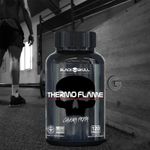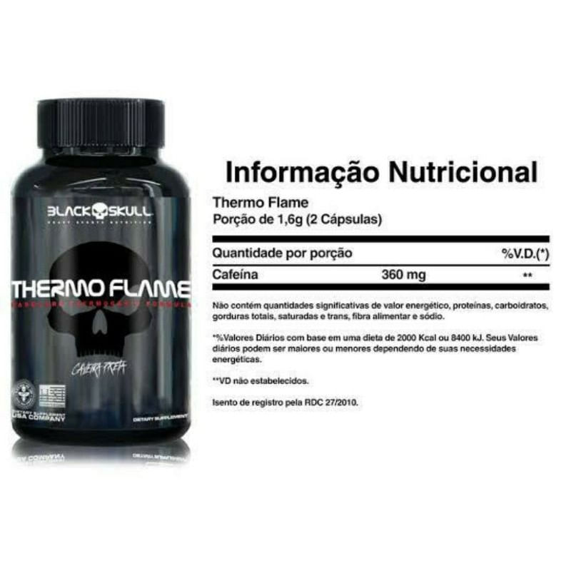 O suplemento termogênico possui ativos em sua formulação capazes de provocar a termogênese, produção de calor, no organismo. Quando o consumo de termogênicos é combinado com uma rotina de exercícios e de alimentação, pode auxiliar no processo de emagrecimento, por exemplo.O THERMO FLAME entrega 360mg de cafeína pura por dose, proporcionando mais energia e foco, otimizando os resultados na busca pelo emagrecimento. Benefícios da cafeína Cafeína é um dos compostos químicos mais comumente consumidas no mundo, e uma pesquisa nacional indicou que 89% adultos americanos ingerem cafeína. Por causa dos efeitos ergogênicos de cafeína no desempenho do exercício, seu uso também é muito prevalente entre atletas.A cafeína passou a ser utilizado com grande frequência, previamente à realização de exercícios físicos, com o intuito de protelar a fadiga e, consequentemente, aprimorar o desempenho físico, sobretudo em atividades de longa duração, aumentar o desempenho e o tempo até a exaustão. A cafeína é uma metilxantina, ou seja, uma substância que tem ação direta no cérebro, e atua bloqueando os receptores da adenosina, um neuromodulador que se acumula no cérebro ao longo do dia e provoca cansaço e sono. Ao bloquear a adenosina, a cafeína aumenta a liberação de neurotransmissores, como adrenalina, noradrenalina, dopamina e serotonina, causando seu efeito estimulante.Absorvida pelo intestino delgado, levando de 40 minutos a 2 horas para ser absorvida e transportada para todos os tecidos corporais e demora de 3 a 8 horas para a substância sair completamente, dependendo da formulação e dos componentes em conjunto nas capsulas.