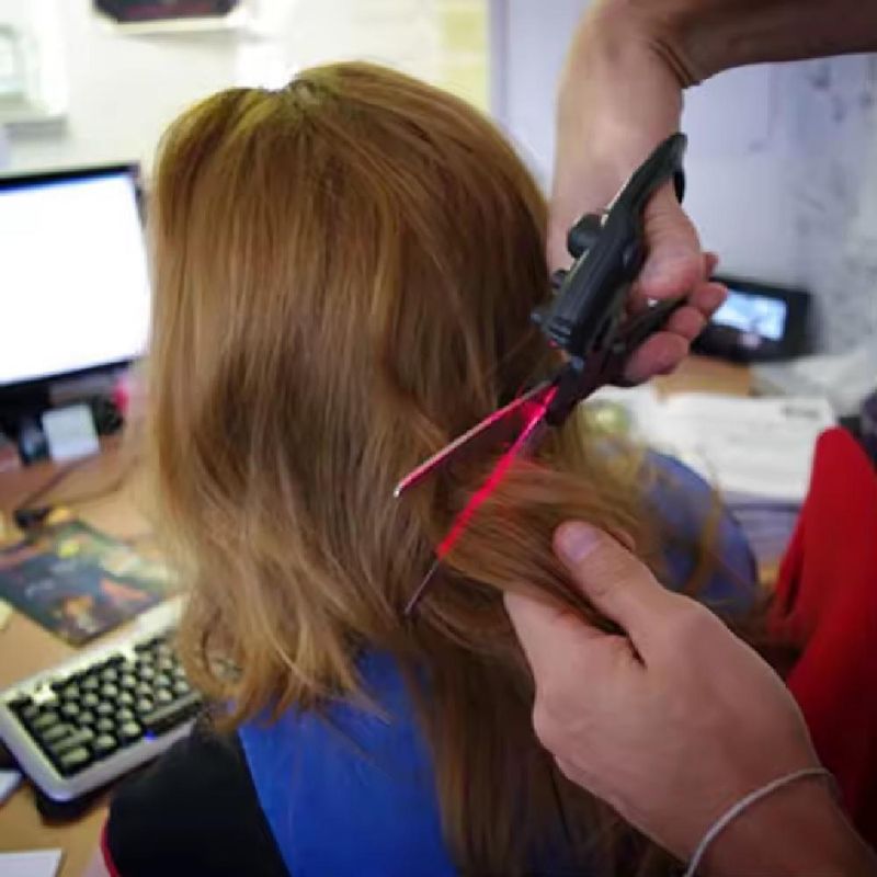 Tesoura Com Mira Laser Guia Corte Tecidos Patchwork Artesanato Papel Raio Precisão Multiuso Costura Hobby
