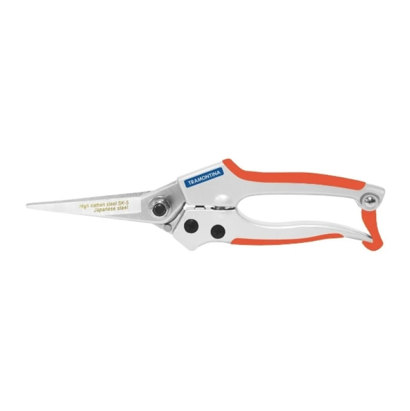 Informações Gerais:1.Confeccionado em alumínio de alta resistência com pega emborrachada antideslizante, oferecendo leveza e maior conforto ao usuário. 2.Trava de segurança utilizada para fechamento das lâminas quando não estão em uso. 3.Lâminas de alto desempenho fabricadas em aço especial japonês de alta qualidade, temperadas e cromadas. 4.Afiação de precisão, proporcionando excelente durabilidade do fio e um corte mais preciso e macio.Recomendações de Uso:A tesoura de poda Professional Tramontina é especialmente desenvolvida para auxiliar na fruticultura, floricultura, silvicultura e paisagismo. Possui cabo ergonômico, trava de segurança e lâminas de aço de alto desempenho.SKU: 15009528