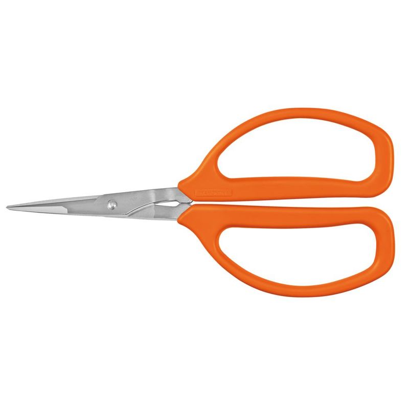 Tesoura para Frutas Tramontina com Lâminas em Aço Inox <br><br> Para colher belos frutos de forma profissional sem prejudicar a planta, ou realizar o desbaste ou raleio de frutas, você pode contar com a tesoura para frutas Tramontina com lâminas em aço inox. Ela é anatômica e tem o tamanho certo para realizar esse tipo de trabalho, além disso, é muito resistente e tem uma excelente lâmina. É uma ferramenta tão versátil que pode ser utilizada até para a poda de bonsais. Não perca mais tempo e utilize essa ótima ferramenta em sua próxima colheita. <br><br> - Tesoura leve: melhor agilidade no uso.<br>- Lâminas em aço inox que evitam oxidação.<br>- Lâminas temperadas, de grande resistência e durabilidade.<br>- Chanfro na lâmina: evita danos ao fruto na colheita.<br>- Cabo anatômico e ergonômico, proporcionando conforto ao operador.<br>- Diâmetro de corte máximo admitido: 5 mm.