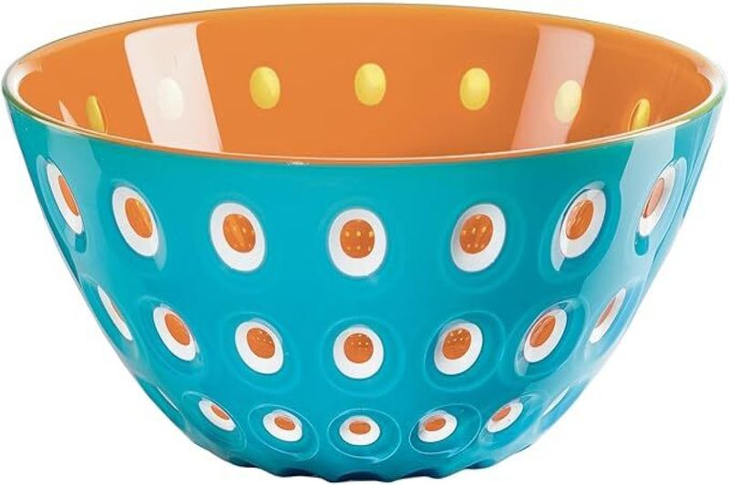 As tigelas (bowls) da coleção Le Murrine são versáteis e ecléticas e apresentam um design sofisticado, adicionando um toque elegante à sua mesa para entradas, saladas ou sobremesas , ou até mesmo podendo ser usadas como objetos de decoração. Pode ser usada com outros componentes sem interferir na apresentação à mesa e ainda destaca o seu menu, deixando-o muito mais atraente e convidativo. Livre de BPA, podem ser levados a lava-louças. Luminosidade e Transparência diferenciados. Fabricado na Itália com a tecnologia exclusiva de três Cores formidáveis da Guzzini - 3 COLOR TECH. Mais resistente e duráveis que cristais. Perfeito para uso ao ar livre. Design Assinado e Premiado Adequado para contato com alimentos, máx. 70°C. Não usar esponjas abrasivas. Seque imediatamente após a lavagem com um pano macio.- Especificações: • Capacidade: 1350 ml • Cor: Blue/Orange • Conteudo- Tigela Bowl 20cm • Dimensão: 20 x h9 cm • Designer: Pio&Tito Toso • Material - Acrilico