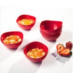 Jogo de tigelas bowl. O pote alem de design arrojado, possuem superfície interna lisa que facilita a lavagem. Produzidos em material altamente resistente, 100% reciclavel e atoxico. E sao livres de Bisfenol A (BPA Free). Podem ser levados ao micro-ondas e freezer. Contem: 6 Tigelas Capacidade: 300 ml Medidas: 5,8 x 11,8 x 11,8 cm Material: Polipropileno PP