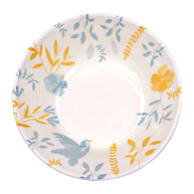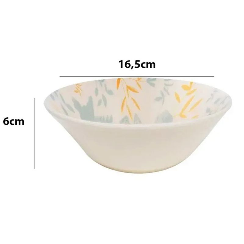 Tigela Conic de Ceramica Donna Bem-Te-Vi 500ml 12 Unidades - Biona 134402 Donna Bem-te-vi é a decoração que representa a fauna e flora do Brasil nos pratos da coleção. Em tons de amarelo e azul claro, ramos, flores e o delicado passarinho Bem-te-vi decoram cada peça. Características do Produto: Cor: Estampado Quantidade: 12 Unidades. Material: Cerâmica. Capacidade: 500 ml. Linha: Bem-Te-Vi. Uso: Resistente a micro-ondas e lava louças. Fabricado por: Oxford. Marca: Biona. Dimensões do Produto: Diâmetro: 16,5 cm. Altura: 06 cm. Recomendações de uso: Ao usar o produto pela primeira vez, lavar bem a peça com esponja macia e sabão neutro; Lavar as peças utilizando esponja macia e sabão neutro; Não levar as peças ao forno; Não submeter as peças a chama direta. Garantia de Fábrica: (90 dias de garantia legal). Todas as imagens são meramente ilustrativas.