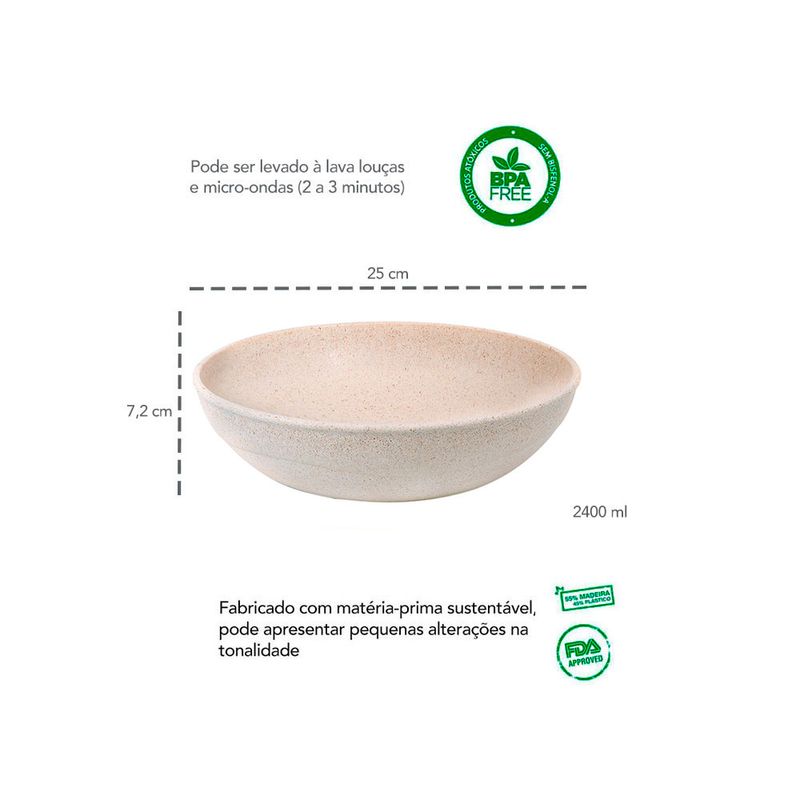 Tigela cumbuca, ideal para saladas e sobremesas. As tigelas são resistentes e tem infinitas possibilidades de uso, como servir pipoca, doces, frutas e saladas. Pode ser levado à lava louças e micro-ondas. Produto atóxico e fabricado com matéria-prima sustentável. Desenvolvida por meio da mistura entre 69% de materiais provenientes de fontes renováveis e uma parcela reduzida de polipropileno. Os produtos EVO são inovadores e sustentáveis, utilizando-se em sua fabricação de 55% de madeira de reflorestamento, provenientes de fontes renováveis, em vez de plásticos, provenientes de fontes de origem não renováveis. A madeira, diferentemente do plástico, que emite CO2 (dióxido de carbono) quando de sua fabricação, durante seu crescimento sequestra carbono da atmosfera, por isso nossos produtos são feitos da composição ideal para equilibrar essa balança. A Evo uniu a madeira e o plástico em um único produto, unindo os benefícios de ambos (beleza, sustentabilidade e durabilidade) e proporcionando menor impacto ao meio ambiente. Produtos aprovados segundo normas do FDA (Food and Drug Administration) dos Estados Unidos sobre registro número 100112660. Contêm: 1 Tigela Saladeira Medidas: 25 x 7,2 cm Capacidade: 2400 ml Casacha é uma loja virtual com artigos para casa, cozinha, banheiro e lavanderia.