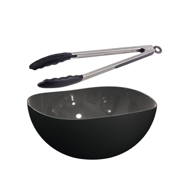 Kit de travessa bowl e pegador de salada. A travessa da UZ além de design arrojado, possuem superfície interna lisa que facilita a lavagem. São fabricados em material altamente resistente. Alta transparência, material 100% reciclável e atóxico. Todos os produtos fabricados pela UZ Utilidades são livres de Bisfenol A (BPA). Os produtos fabricados em Polipropileno (PP) podem ser levados ao micro-ondas e freezer. Acompanha pegador com haste de inox e silicone injetado preto. Desenvolvido com silicone altamente resistente, suportando até 240°C, atóxico e resiste a mudança de temperatura sem deformar e aquecer. Não absorve líquidos, resíduos ou cheiro, são higiênicos e fáceis de lavar. Uma solução prática e moderna, que traz toda funcionalidade sem danificar e desprender substâncias do fundo das panelas ou recipientes. Contêm: 1 Travessa de 2 litros - 10,4 x 24,8 x 24,8 cm 1 Pegador de Salada - 27 x 4 cm