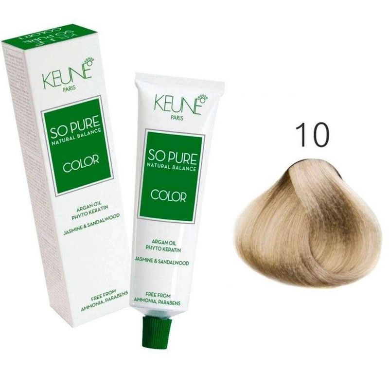 Tinta So Pure Color Keune 10 Very Light Violet Pearl Blonde 60mlA Keune inspirou-se na natureza e usou muita tecnologia para criar uma linha que colore de forma suave e poderosa. A So Pure Color uma coloração permanente que cobre até 100% dos fios brancos, é totalmente livre de amônia e de PPD Parafenilenodiamina (grande causador de alergias) apresentando baixa incidência de reações alérgicas, possui ingredientes altamente condicionantes como fitoqueratina, óleo de argan e extratos 100% naturais.Sua composição é enriquecida com ingredientes cuidadosamente selecionados como:Fitoqueratina: Queratina extraída de plantas que fortalece e dá brilho ao cabelo.Extrato de Coco: Condiciona o fio e evita manchas no couro cabeludo e pele após a coloração.Óleo de Argan: Alta hidratação e força aos fios e proteção contra agentes externos.Jasmim: Hidrata os fios e evita a oxidação e o desbotamento da cor.Sândalo: Auxilia no equilíbrio de couro cabeludo seco e oleoso.Possui uma textura perolizada inconfundível, com uma cartela de cor extremamente fiel e uma experiência aromática indescritível!So Pure Color tem um cardápio de tons vibrantes e naturais, ideais para quem gosta de impressionar por onde passa!
