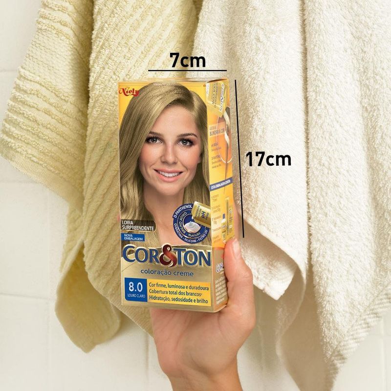 Tintura Creme Cor&Ton 8.0 Louro ClaroCom a Tintura Creme Cor&Ton 8.0 Louro Claro, você realça a cor natural do seu cabelo, cobre os cabelos brancos, clarea ou escurecer os cabelos. Tintura Creme Cor&Ton 8.0 Louro Claro proporciona aos cabelos cores vivas, luminosas e duradouras com hidratação, sedosidade e brilho. Sua formulação com queratina, gérmen de trigo, silicone e filtro UV que garantem cabelos fortes, nutridos e com máxima proteção. Com textura cremosa, facilita a distribuição nos fios, fazendo com que os pigmentos sejam facilmente absorvidos. Uma coloração permanente com fórmula de altíssima qualidade.