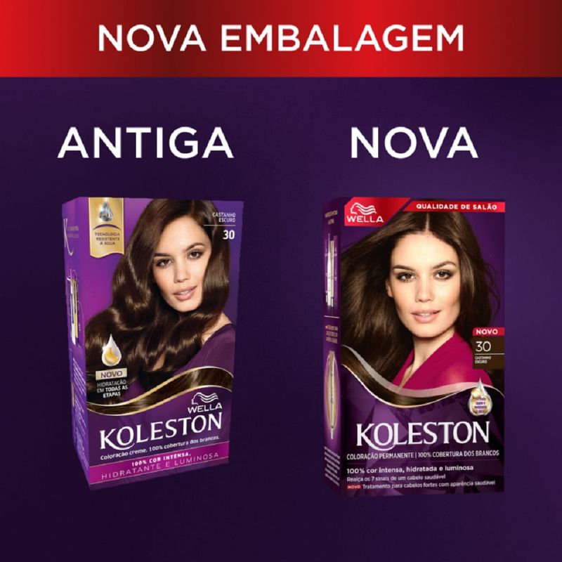 Tintura Koleston 30 Castanho EscuroA Tintura Koleston 30 Castanho Escuro foi desenvolvida para cobrir perfeitamente os fios de cabelos brancos. Sua fórmula possui o exclusivo tratamento gloss intenso que atua como uma barreira de proteção no cabelo para deixa-lo com mais brilho e maciez, ajudando a manter a intensidade da cor. Conta também com o reativado de cor que deposita mais pigmentos no seu cabelo para ajudar no desenvolvimento da cor.
