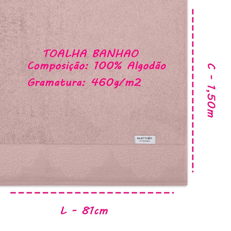 Descubra a elegância e o conforto da Toalha de Banho Gigante 81cm x 1,50m Nobre Jacquard Limoges Buettner. Com um design sofisticado, esta toalha é perfeita para quem busca não apenas funcionalidade, mas também um toque de requinte em seu dia a dia. Seu corpo felpudo liso e o uso de fio penteado garantem uma maciez inigualável, enquanto a barra jacquard com relevo ornamental e efeitos em anarruga traz um charme especial, elevando a experiência do banho a um novo patamar.Toalha Avulsa Banhão KazzaVip 100% Algodão Nobre Jacquard Limoges 81cmx150m Rosa CetimTodas as informações divulgadas são de responsabilidade do fabricante/fornecedor.Marca: BuettnerClassificação: Banhão Tecido: Felpuda TintoComposição (Fios): Fio Penteado - 100% AlgodãoGramatura: 460g/m2Conteúdo e Medidas: Toalha Felpuda Banhão Algodão - Limoges - 01 PeçaTamanho(0,81cm x 1,50m)AcabamentoCorpo felpudo liso com fio penteadoToque macio e ótima absorçãoDetalheBarra jacquard com relevo ornamental e efeitos em anarrugaProduto Licenciado por BoutonColeção / Sortimento: Linha LimogesCor: Rosa CetimFabricante: BoutonReferencia: 42745Código de Barra: 7892409427457Garantia(Fabricante): Contra Defeito de FabricaçãoImagens Meramente IlustrativasINFORMAÇÕES IMPORTANTES: Item composto apenas por 01 Toalha Avulsa Banhão ,os demais itens são meramente decorativos e NÃO fazem parte do conteúdo da embalagem.Aviso : - Todas as medidas são valores aproximados e podem sofrer alguma variação.- As cores podem sofrer uma pequena variação, dependendo do lote do produto e das configurações do seu computador.