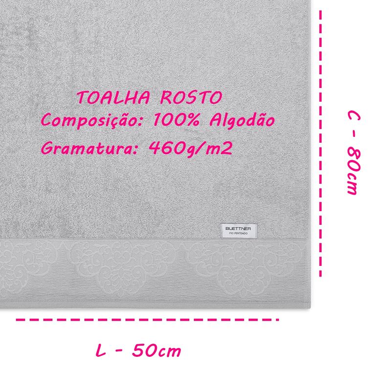 Descubra a elegância e o conforto da Toalha de Rosto 50cm x 80cm Nobre Jacquard Limoges Buettner. Com um design sofisticado, esta toalha é perfeita para quem busca não apenas funcionalidade, mas também um toque de requinte em seu dia a dia. Seu corpo felpudo liso e o uso de fio penteado garantem uma maciez inigualável, enquanto a barra jacquard com relevo ornamental e efeitos em anarruga traz um charme especial, elevando a experiência do banho a um novo patamar.Toalha Avulsa Rosto KazzaVip 100% Algodão Nobre Jacquard Limoges 50cm 80cm PrataTodas as informações divulgadas são de responsabilidade do fabricante/fornecedor.Marca: BuettnerClassificação: RostoTecido: Felpuda TintoComposição (Fios): Fio Penteado - 100% AlgodãoGramatura: 460g/m2Conteúdo e Medidas: Toalha Avulsa Felpuda Rosto Algodão - Limoges - 01 PeçaTamanho(0,50cm x 80cm)AcabamentoCorpo felpudo liso com fio penteadoToque macio e ótima absorçãoDetalheBarra jacquard com relevo ornamental e efeitos em anarrugaProduto Licenciado por BoutonColeção / Sortimento: Linha LimogesCor: PrataFabricante: BoutonReferencia: 42753Código de Barra: 7892409427532Garantia(Fabricante): Contra Defeito de FabricaçãoImagens Meramente IlustrativasINFORMAÇÕES IMPORTANTES: Item composto apenas por 01 Toalha Avulsa Rosto ,os demais itens são meramente decorativos e NÃO fazem parte do conteúdo da embalagem.Aviso : - Todas as medidas são valores aproximados e podem sofrer alguma variação.- As cores podem sofrer uma pequena variação, dependendo do lote do produto e das configurações do seu computador.
