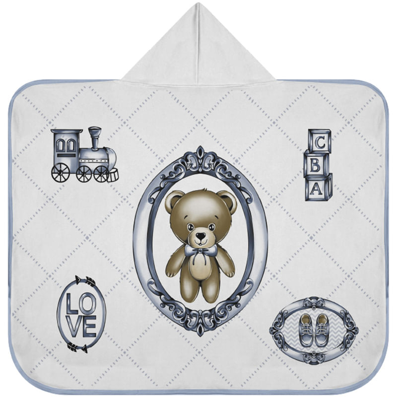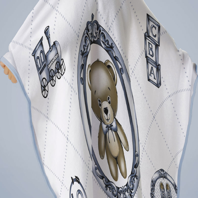 Toalha Baby C/ Capuz Tecebem Estampada Kinder Guilherme Azul
