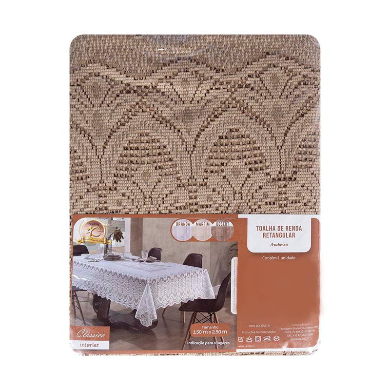 Toalha de Mesa Retangular 8 Lugares Renda Clássica Arabesco Interlar 150x250cm Desert