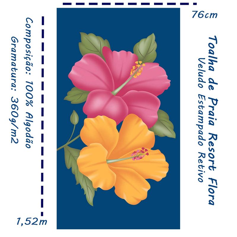 Cama, Mesa e BanhoBanhoToalha de PraiaToalha de Praia KazzaVip Veludo Estampado Reativo 100% Algodão Flora 76cmx1,52m Resort Azul
