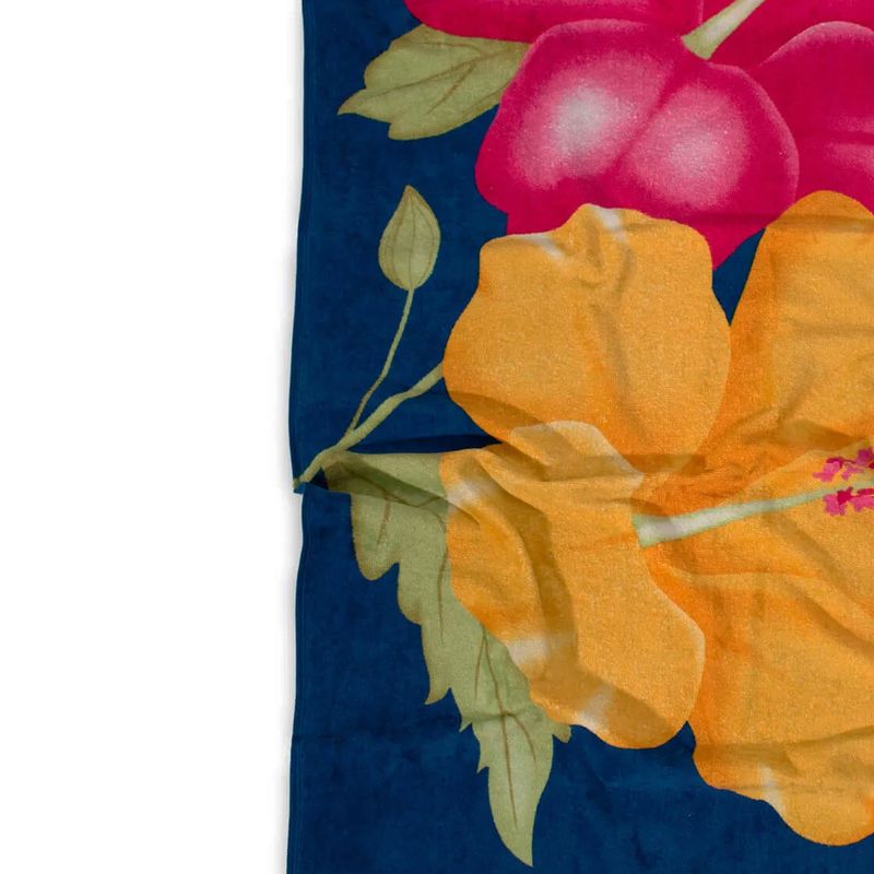 Toalha de Praia KazzaVip Veludo Estampado Reativo 100% Algodão Flora 76cmx1,52m Resort Azul