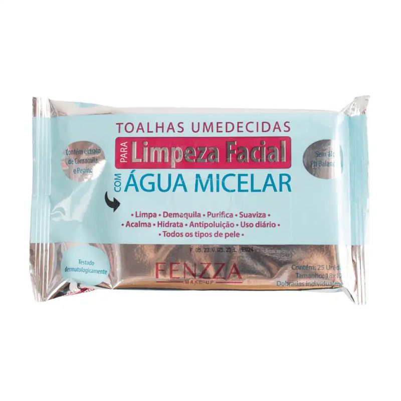 As Toalhas Umedecidas Fenzza Limpeza Facial com Água Micelar possuem, em sua composição, ingredientes com ação purificante e revigorante, bem como Extrato de Camomila e Extrato de Pepino, que acalma e suaviza. Além disso, contam têm propriedades hidratantes que ajudam a manter a pele macia. E pH balanceado, o que permite o uso diário em todos os tipos de pele.E pode usar tranquilamente, pois estas toalhas são testadas e aprovadas por dermatologistas!Conselho de Aplicação Abra a parte indicada na embalagem e retire um lenço, puxando pela frente. Passe por todo o rosto, quantos lenços forem necessários até a total limpeza da pele. Feche a embalagem assim que terminar de usá-los. Ação / Resultado: Extrato de Camomila: acalma a pele. Extrato de Pepino: suaviza a pele e evita irritações. Pele limpa, macia e com brilho natural.