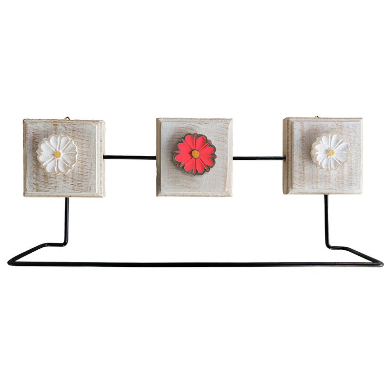 Toalheiro Ferro e Madeira Artesanal Flores Colorido
