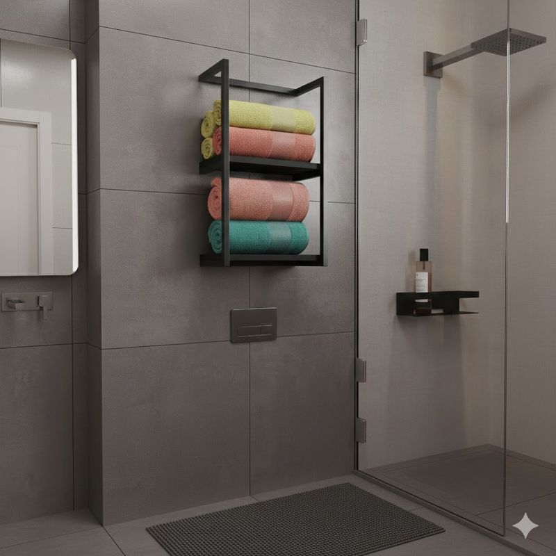 O Toalheiro Sahy dá um toque especial no seu banheiro sem perder a praticidade. Seu banheiro terá elegância e design te proporcionando comodidade de ter suas toalhas ao alcance de suas mãos. Medidas: Altura: 64 cm Largura: 40 cm Profundidade: 20 cm. Material: Estrutura em aço carbono Pintura epóxi Prateleira em MDF Suporta até 15 kg por prateleira