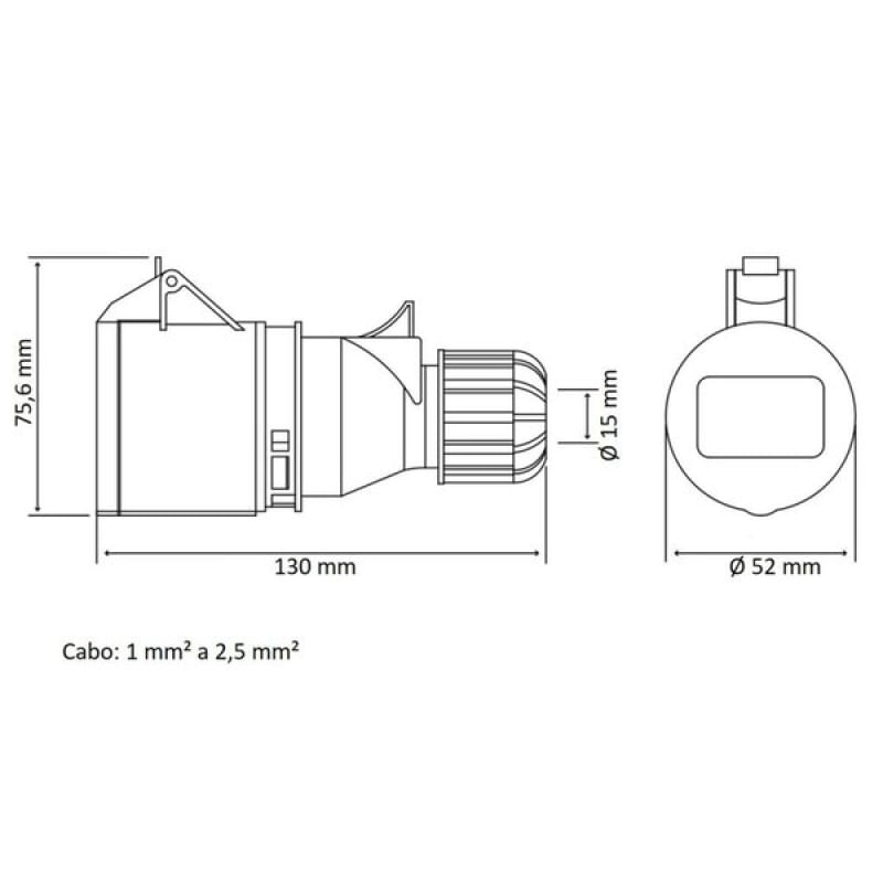 Tomada Acoplamento Industrial 2P+T 16A 380-415Vca 9H Tramontina Tramontina - A Tomada de Acoplamento Industrial 2P+T 16 A 380-415 Vca 9 H Tramontina é a escolha certa para você realizar conexões elétricas com alta qualidade em pavilhões industriais. Ela tem sua fabricação em termoplástico auto extinguível, material isolante e de altíssima resistência mecânica. Ela apresenta uma excelente conexão elétrica durante toda sua vida útil, isso devido aos seus componentes de metal possuírem tratamento para resistência à corrosão em sua superfície. E o melhor, sua instalação é fácil de realizar, pois é só liberar a trava com o auxílio de uma chave de fenda e girar, tanto para sua montagem quanto para desmontagem. Qualidade em seu dia a dia é com Tramontina! Características Gerais do Produto: Garantia: • 90 dias de garantia legal para vícios ou defeitos de fabricação.