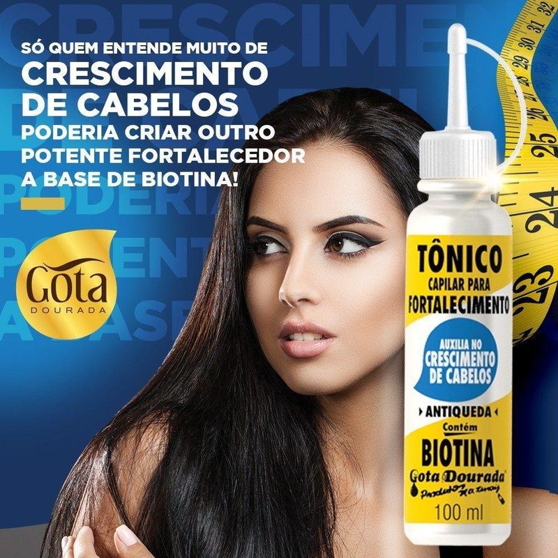 T?nico Capilar Gota Dourada Antiqueda Biotina 100mlO Tônico Capilar Gota Dourada Fortalecimento Biotina possui em sua formulação biotina , uma vitamina essencial do complexo B, também conhecida com vitamina B7 ou H, que desempenham diversas funções no organismo, ajudando a manter a saúde da pele, cabelo e do sistema nervoso. Para combater a queda de cabelo e fazer com que cresça mais rápido