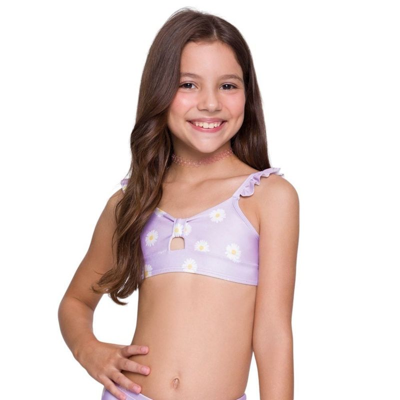 Descrição:Está em busca de uma opção de top biquíni que seja encantadora e confortável para a sua pequena nadadora? O Top Biquíni Selene Com Babado vai superar as suas expectativas. Com uma composição em poliéster e elastano, este modelo oferece conforto e flexibilidade, permitindo movimentos livres, seja na piscina, ou em na praia. O modelo é forrado e traz alcinhas finas com detalhes em babado, dando um toque meigo e charmoso. Além disso, a estampa divertida, proporciona destaque e estilo. Medidas aproximadas (cm) TAMANHOS: 2:20x10 /4:22x12 / 6:24x14 / 8:26x16 (Largura x Comprimento). INFORMAÇÕES: Composição: 85% Poliéster e 18% elastano Forro: 90% Poliéster e 10% elastano Gênero: Infantil Indicado: Natação