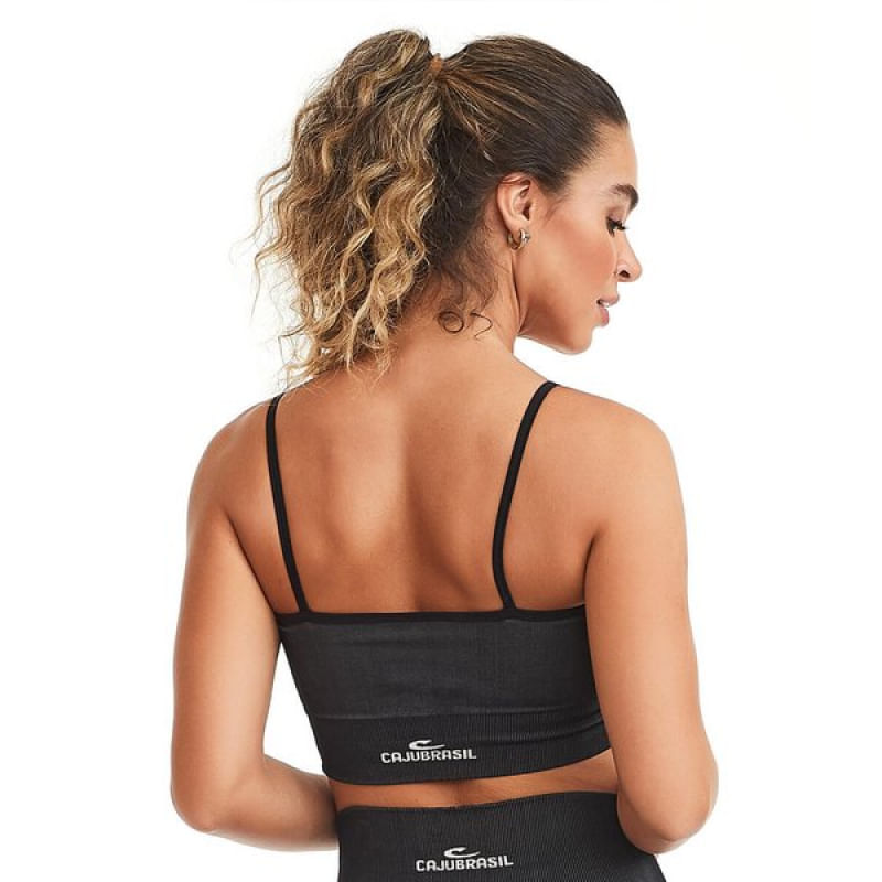 O Top Caju Brasil Seamless é confeccionado em tecido poliamida, poliéster e elastano, garantindo conforto e toque macio na pele. Além disso, a peça apresenta design com bojo removível, conta com a tecnologia da LYCRA MyFit, que se ajusta ao corpo, dando a impressão que ela foi feita sob medida pra você. Além disso, ainda conta com a tecnologia UV 50+, que irá te proteger contra os raios solares durante a atividade esportiva ao ar livre. Aproveite essa chance e adquira agora o seu Top Caju Brasil Seamless!Nome: Top Caju Brasil Seamless PretoOrigem: NacionalTecido predominante: 57% Poliamida, 29% Poliéster e 14% ElastanoCor predominante: PretoIndicado para: Dia a Dia e TreinoPeso: 120g (Referente ao tamanho M)Medidas aproximadas: Altura x Largura (A x L)M: 31 cm x 32 cmG: 33 cm x 34cmGarantia do fabricante: Contra defeito de fabricação Características Gerais do Produto: • Gênero: Feminino • Cor: Preto • Indicado para: Treino e Dia a Dia Garantia: • 30 dias após o recebimento do produto