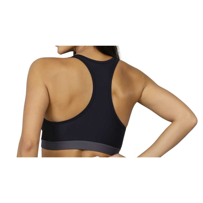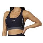 Um top de treino que garante máxima estabilidade e um visual arrojado. Pensado para o desempenho, o design nadador nas costas proporciona excelente distribuição de peso. A base elástica e os contornos no busto trabalham juntos para um ajuste firme e uma modelagem perfeita. O detalhe metalizado prateado confere um design futurista à peça, complementado pelos recortes em cores vibrantes nas laterais e na base. A camada dupla na frente oferece a conveniência do bojo opcional. Tecnologia de Cobertura e Compressão Confeccionado com o tecido Hyper (84% Poliamida, 16% Elastano). Esta malha de compressão dupla é famosa por sua cobertura excepcional (zero transparência) e por disfarçar irregularidades da pele. Sua elasticidade multidirecional aliada à compressão balanceada é ideal para treinos intensos, oferecendo suporte muscular. Além de ser respirável e de secagem rápida, possui proteção UV50+, tornando-o um item indispensável em qualquer guarda-roupa fitness.