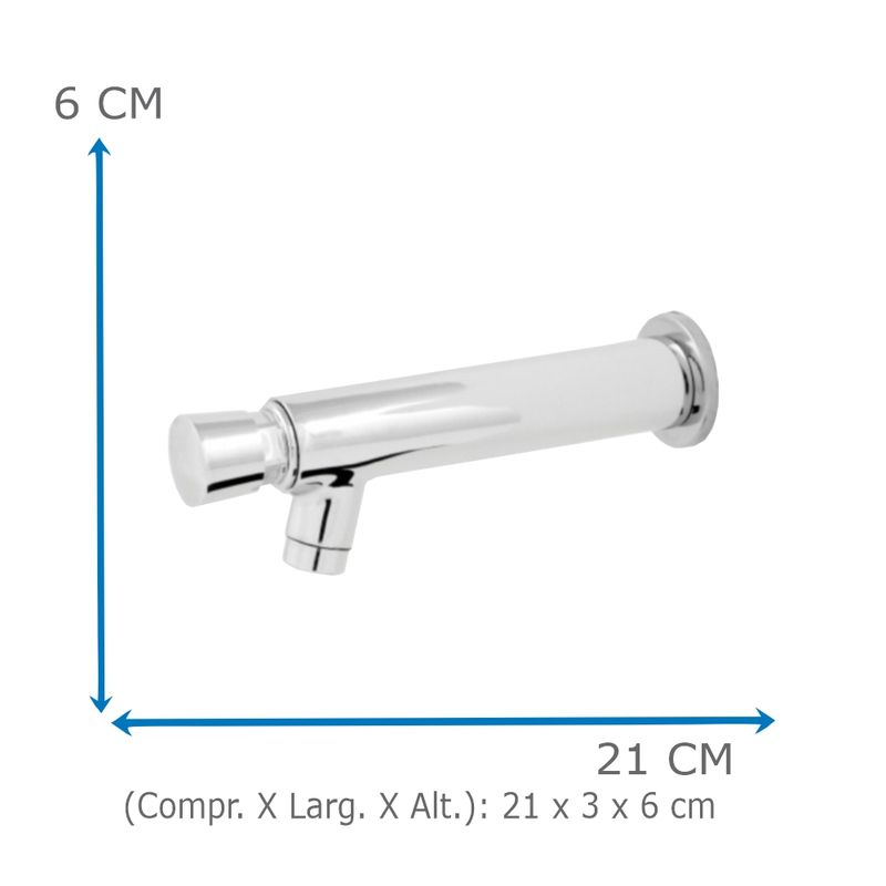 TORNEIRA DE BANHEIRO/LAVATÓRIO OLIVEIRA 1158 AUTOMÁTICA COM TEMPORIZADOR DE PAREDE EM METALPara deixar o banheiro impecável em todos os detalhes e ainda consumir menos água, uma opção excelente é esta torneira. Com fechamento automático e design moderno, ela proporcionará economia de água e dará um toque especial ao banheiro, unindo o útil ao agradável. Com estrutura em metal, um material com características essenciais a esse tipo de peça, resistência e durabilidade, ela recebe acabamento cromado que a torna ainda mais bela. A linha automática com temporizador é fabricada de acordo com os rigorosos padrões de qualidade internacionais, e vem com fechamento automático com temporizador entre 6 e 10 segundos. Somando a isso, este modelo acompanha mecanismo economizador de água, conferindo uma economia de até 60% em relação às torneiras comuns. Dimensões do produto: (Compr. X Larg. X Alt.): 21 x 3 x 6 cmTAGS e palavras chave do produto: Automática, Automáticos, Tecnologia, Uso Público, Economizadores, Temporizadores, Contemporâneo, Cromado, Torneiras, Pressmatic Torneiras. De acordo com especialistas e arquitetos, esta torneira combina com: Ambientes residenciais e corporativos, hotéis, restaurantes e escolas. *imagens ilustrativas.