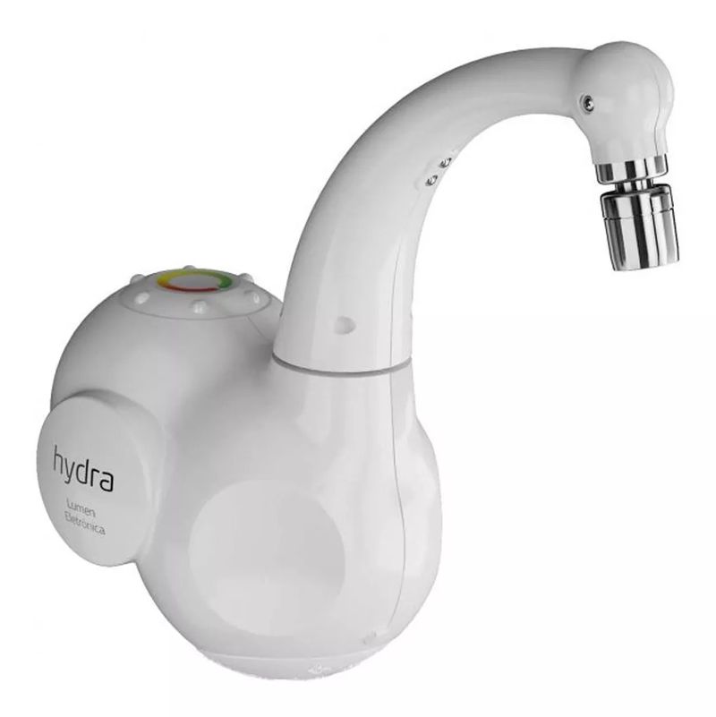 Torneira Elétrica Lumen De Parede Branca - Hydra 127vA Torneira Lumen possui bica móvel, arejador articulável e um sistema eletrônico de temperatura que permite alterar a temperatura de forma gradual.Dispensa o desligamento da torneira para a troca da temperatura, além de LEDs que possibilitam visualizar a temperatura da água pela cor, deixando as atividades domésticas mais confortáveis.* SISTEMA ELETRÔNICO100% de domínio de aquecimento. Começando do mínimo ao máximo, gradualmente, proporcionando conforto e segurança.* LED INDICATIVO DE TEMPERATURALEDs que possibilitam visualizar a temperatura da água pela cor, deixando as atividades domésticas mais confortáveis.* JATO GERADOGera 50% de economia no consumo de água, com o maior poder de enxague.- Compatível com DR (Dispositivo Diferencial Residual): Sim- Disjuntor (A): 30A (220V); 50A (127V)- Fios (mm2): 6mm (127V); 4mm (220V)- Temperatura Máxima da Água: 50°C- Pressão de Funcionamento: 20 a 400kPa (2 a 40mca)- Grau de Proteção: IP 24- Comprimento do fio de instalação : 37cm- Ideal para água direto da rede : Não
