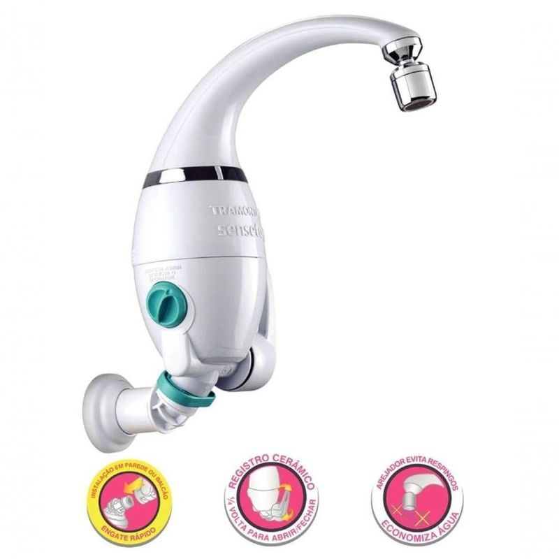 Torneira Eletrônica Tramontina Com Bica Articulada 6500 W 220 VSense Top torneira eletrônica, para cozinha ou banheiro, possui prática bica móvel com rotação de 360º e pode ser instalada em parede ou balcão. Multitemperaturas, possibilita a escolha da melhor temperatura da água, com a torneira em uso. Seu arejador evita respingos, o que economiza água, e o registro cerâmico precisa de apenas 1/4 de volta para abrir e fechar, proporcionando praticidade e durabilidade. Possui redutor automático de pressão de água, trava automática de para a troca da resistência. Para ainda maior é com disjuntor residual (DR). Garantia de 1 ano.Recomendações de Uso:A instalação e : É importante que o produto seja instalado por habilitado. Antes de instalar, desligue a energia elétrica.- Foto meramente ilustrativaInformações Adicionais:A instalação e : É importante que o produto seja instalado por habilitado. Antes de instalar, desligue a energia elétrica.