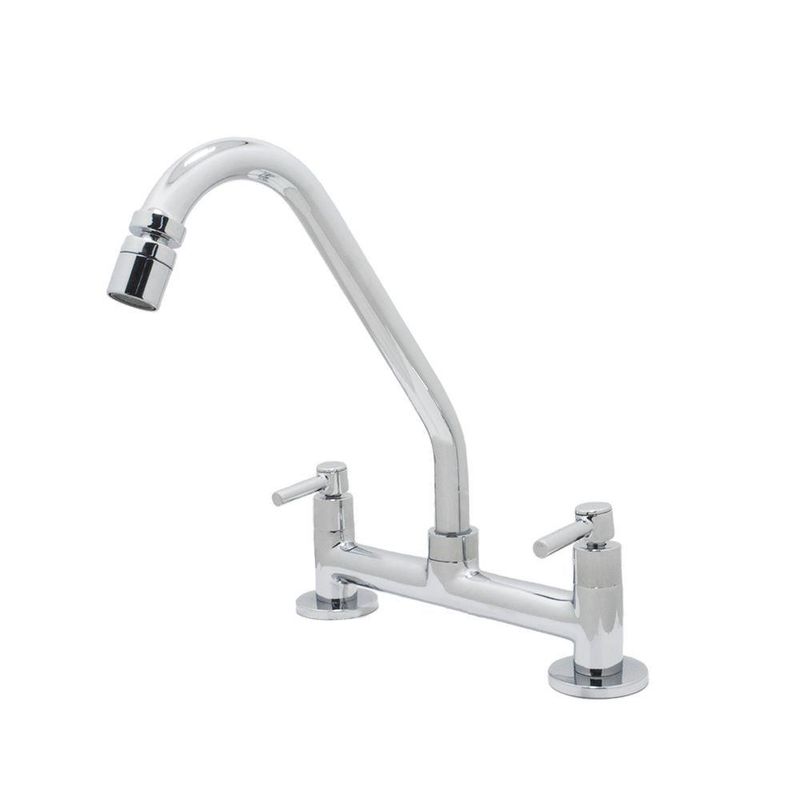 Torneira Misturador Cozinha 1/4 Volta Bancada LuxoTORNEIRA MISTURADOR COZINHA PIA BANCADA LUXO CROMADO 1/4 VOLTA ÁGUA QUENTE E FRIADesenvolvido com material primeira de qualidade, o Misturador para Cozinha água quente e fria é a opção ideal para quem busca um modelo com design tradicional e com muito glamour.O sistema de comando duplo possui dois volantes: um para água quente e outro para água fria. Permitirá que você escolha a temperatura de forma prática e simples, sendo que o usuário controla a vazão de água e controla a mistura de água quente com água fria.Fabricado em latão, possui alta resistência a riscos e corrosões. Além disso, toda a linha luxo possui um design moderno o que a torna um bonito objeto decorativo, trazendo um toque de requinte e sofisticação para sua cozinha.Este misturador possui mecanismo ¼” de volta cerâmico, que ajuda a reduzir o consumo de água, aumentando a rapidez de abertura e fechamento.Para manutenção e limpeza usar apenas pano macio e sabão neutro. Não usar produtos abrasivos como sapólio, palha de aço e produtos químicos.Misturador Cozinha Convencional Arejador ArticuladoDADOS TÉCNICOS:- Shophidraulica- Material; Corpo Metal- Mecanismo : ¼ de volta- Posição de instalação: Mesa- Bitola: ½”- Distância do furo p/ instalação: 20 cm- Pressão Mín.: 2 m.c.a - Pressão Máx.: 40 m.c.a- Vazão Mín.: 4 l/m- Vazão Máx.: 16 l/m- Suporta até 70º C de temperatura- Tubo Bica Móvel com arejador articulado (móvel)- Certificação: PBQP-H- Garantia: 5 anos defeito de fabricaçãoTORNEIRA MISTURADOR COZINHA PIA BANCADA LUXO CROMADO 1/4 VOLTA ÁGUA QUENTE E FRIADesenvolvido com material primeira de qualidade, o Misturador para Cozinha água quente e fria é a opção ideal para quem busca um modelo com design tradicional e com muito glamour.O sistema de comando duplo possui dois volantes: um para água quente e outro para água fria. Permitirá que você escolha a temperatura de forma prática e simples, sendo que o usuário controla a vazão de água e controla a mistura de água quente com água fria.Fabricado em latão, possui alta resistência a riscos e corrosões. Além disso, toda a linha luxo possui um design moderno o que a torna um bonito objeto decorativo, trazendo um toque de requinte e sofisticação para sua cozinha.Este misturador possui mecanismo ¼” de volta cerâmico, que ajuda a reduzir o consumo de água, aumentando a rapidez de abertura e fechamento.Para manutenção e limpeza usar apenas pano macio e sabão neutro. Não usar produtos abrasivos como sapólio, palha de aço e produtos químicos.Misturador Cozinha Convencional Arejador ArticuladoDADOS TÉCNICOS:- Shophidraulica- Material; Corpo Metal- Mecanismo : ¼ de volta- Posição de instalação: Mesa- Bitola: ½”- Distância do furo p/ instalação: 20 cm- Pressão Mín.: 2 m.c.a - Pressão Máx.: 40 m.c.a- Vazão Mín.: 4 l/m- Vazão Máx.: 16 l/m- Suporta até 70º C de temperatura- Tubo Bica Móvel com arejador articulado (móvel)- Certificação: PBQP-H- Garantia: 5 anos defeito de fabricação