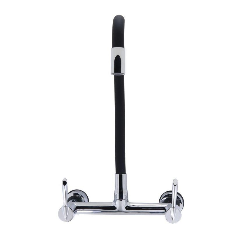 Torneira Misturador Cozinha Parede Tubo Flexível Color Preto Alavanca 1/4 De Volta Metal LuxoTorneira Tubo Flexível Parede Cozinha Color Preta LuxoDesenvolvido com material primeira de qualidade, o Misturador para Cozinha água quente e fria é a opção ideal para quem busca um modelo com design tradicional e com muito glamour.O sistema de comando duplo possui dois volantes: um para água quente e outro para água fria. Permitirá que você escolha a temperatura de forma prática e simples, sendo que o usuário controla a vazão de água e controla a mistura de água quente com água fria.Fabricado em latão, possui alta resistência a riscos e corrosões. Além disso, toda a linha luxo possui um design moderno o que a torna um bonito objeto decorativo, trazendo um toque de requinte e sofisticação para sua cozinha.Este misturador possui mecanismo ¼” de volta cerâmico, que ajuda a reduzir o consumo de água, aumentando a rapidez de abertura e fechamento.Para manutenção e limpeza usar apenas pano macio e sabão neutro. Não usar produtos abrasivos como sapólio, palha de aço e produtos químicos.Misturador Cozinha Colorido 1 jatoDADOS TÉCNICOS:- Shophidraulica- Material; Corpo Metal; Volante ABS- Mecanismo : ¼ de volta- Posição de instalação: Parede- Bitola: ½” com Bucha de Redução para ¾ “- Distância do furo p/ instalação: Mín. 18 cm / Máx. 21 cm- Pressão Mín.: 4 m.c.a - Pressão Máx.: 40 m.c.a- Vazão Máx.: 16 l/m- Suporta até 70º C de temperatura- Arejador : SIM- Certificação: PBQP-H- Garantia: 5 anos defeito de fabricaçãoTorneira Tubo Flexível Parede Cozinha Color Preta LuxoDesenvolvido com material primeira de qualidade, o Misturador para Cozinha água quente e fria é a opção ideal para quem busca um modelo com design tradicional e com muito glamour.O sistema de comando duplo possui dois volantes: um para água quente e outro para água fria. Permitirá que você escolha a temperatura de forma prática e simples, sendo que o usuário controla a vazão de água e controla a mistura de água quente com água fria.Fabricado em latão, possui alta resistência a riscos e corrosões. Além disso, toda a linha luxo possui um design moderno o que a torna um bonito objeto decorativo, trazendo um toque de requinte e sofisticação para sua cozinha.Este misturador possui mecanismo ¼” de volta cerâmico, que ajuda a reduzir o consumo de água, aumentando a rapidez de abertura e fechamento.Para manutenção e limpeza usar apenas pano macio e sabão neutro. Não usar produtos abrasivos como sapólio, palha de aço e produtos químicos.Misturador Cozinha Colorido 1 jatoDADOS TÉCNICOS:- Shophidraulica- Material; Corpo Metal; Volante ABS- Mecanismo : ¼ de volta- Posição de instalação: Parede- Bitola: ½” com Bucha de Redução para ¾ “- Distância do furo p/ instalação: Mín. 18 cm / Máx. 21 cm- Pressão Mín.: 4 m.c.a - Pressão Máx.: 40 m.c.a- Vazão Máx.: 16 l/m- Suporta até 70º C de temperatura- Arejador : SIM- Certificação: PBQP-H- Garantia: 5 anos defeito de fabricação