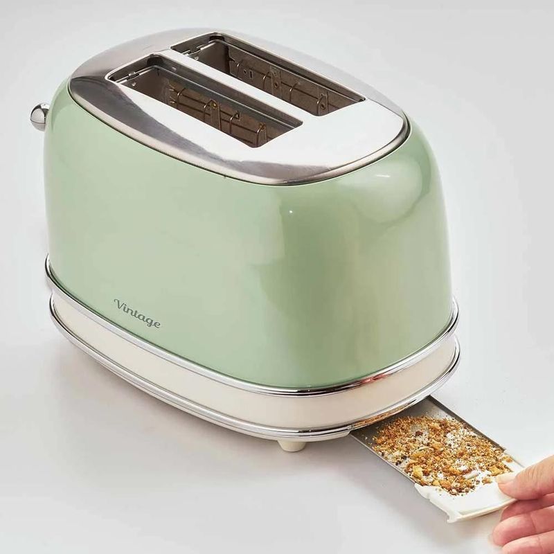 A Torradeira Ariete 155 Vintagem combina um design retro encantador com a praticidade moderna, perfeita para quem aprecia um toque de estilo na cozinha. Com potência de 750W e funcionamento em 220 volts, esta torradeira é ideal para preparar torradas crocantes e uniformes em poucos minutos. Seu recurso de desligamento automático proporciona segurança e evita queimaduras, tornando-a uma escolha confiável para o dia a dia. O acabamento azul vibrante adiciona um charme especial, tornando-a não apenas um eletrodoméstico, mas também um item decorativo. Modelo: 155 Cor: Verde Potência: 750W Corpo: Metal Funções: Torrar, descongelar e aquecer Torrada ajustável: 6 níveis de tostagem Gaveta de migalhas removível: Sim Centralização automática de fatias: Sim Ejeção automática de fatias: Sim Compartimento de enrolamento de cabos: Sim Pés antiderrapantes: Sim Marcação de conformidade: CE Registro no INMETRO: BRA23/00713