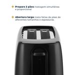 Imagine começar seu dia com o aroma irresistível de pão torrado na medida certa. A Torradeira Britânia 6 Níveis de Tostagem 700W BTR05A é a aliada perfeita para transformar seus cafés da manhã em momentos ainda mais especiais. Com a Torradeira Britânia, você tem o controle total da sua torrada. Seja você fã de um pão mais clarinho ou bem dourado, os 6 níveis de tostagem permitem que você escolha o ponto ideal para o seu paladar. Agilidade e praticidade em um só produto! Com 700W de potência, a Torradeira Britânia prepara suas torradas rapidamente, para você aproveitar cada minuto do seu dia. E se você mudar de ideia no meio do processo? Sem problemas! A função cancelar permite interromper a torrada a qualquer momento. A abertura extralarga da torradeira acomoda diferentes tipos de pão, desde as fatias mais finas até as mais grossas. Além disso, a bandeja coletora de migalhas facilita a limpeza e mantém sua cozinha sempre organizada. E se não bastasse, a base antiderrapante garante que a torradeira fique firme sobre a bancada, evitando acidentes. Torradeira Britânia 6 Níveis de Tostagem 700W BTR05A: o toque final para um café da manhã perfeito e um dia mais feliz! • Função cancelar • 6 níveis de tostagem • Capacidade para 2 torradas • Pés antiderrapantes • Coletor de migalhas • Porta fio • Composição: Metal e Plástico.