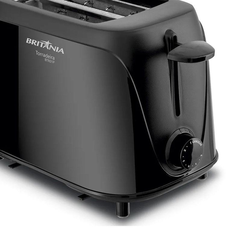 Torradeira Britânia Btr01p Com 6 Níveis De Tostagem Preta - 220vTorradeira Britânia BTR01P com 6 Níveis de Tostagem Preta 220VTostagem Perfeita com 6 Níveis Eleve sua experiência de café da manhã com a Torradeira Britânia BTR01P com 6 Níveis de Tostagem Preta, um aparelho essencial na sua cozinha. Com seis níveis de tostagem, esta torradeira na cor preta oferece personalização total para atender a todos os gostos, desde torradas levemente aquecidas até bem crocantes. Seu design moderno e elegante em preto se integra perfeitamente a qualquer estilo de cozinha. Versátil A Torradeira Britânia BTR01P não é apenas bonita, mas também incrivelmente prática. Equipada com funções de reaquecimento, descongelamento e cancelamento, ela atende a diversas necessidades matinais. Além disso, a bandeja de migalhas removível facilita a limpeza, tornando a manutenção simples e rápida. O design compacto é ideal para cozinhas de qualquer tamanho, garantindo que o aparelho possa ser acomodado facilmente, mesmo em espaços limitados. Segurança e fácil manuseio Esta torradeira foi projetada pensando na segurança e na conveniência do usuário. Seus componentes de alta qualidade garantem durabilidade e confiabilidade no uso diário. Se você procura por um café da manhã perfeito ou um lanche rápido, a Torradeira Britânia BTR01P é a escolha ideal, oferecendo desempenho consistente e resultados deliciosos a cada uso. Características Gerais do Produto: - Benefícios do produto: Torradeira com pés antiaderentes e coletor de migalhas, fumção cancelar e com capacidade de 2 torradas. - Dimensões AxLxP (CM): 18 X 15,5 X 27 - Formato: Retangular - Produzido em: Plástico de Engenharia, Aço Inox, Alumínio, Placa de Circuito Impresso e Componentes Eletrônicos - Voltagem: 220V - Alimentação: Energia elétrica - Cor acabamento: Preto - Potência: 750W - Garantia: 1 ano junto ao fabricante - Ajuste de Temperatura: Sim - Aplicação: Mesa - Base antiderrapante: Sim - Material antiaderente: Sim - LED indicador de funcionamento: Sim - Peso: 0,790 Kg - Timer programável: Sim - Desligamento Automático: Sim Acompanha o produto: - 01 Torradeira - 01 Cabo de força - 01 Manual Garantia: - 1 ano junto ao fabricante