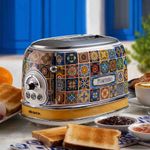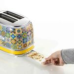 Design refinado e funcionalidade de última geração para transformar a cozinha em um oásis de beleza, o charme mediterrâneo desta linha é inspirado no estilo único e vibrante do maravilhoso resort de Positano. A torradeira elétrica da linha Positano da Ariete torra 2 fatias de pão ao mesmo tempo, com 2 compartimentos separados, com a possibilidade de escolher o grau de dourar e torrar do pão e torrada de sua preferência, graças aos 6 níveis que podem ser selecionados usando o botão. As fatias são ejetadas automaticamente depois de torradas, evitando queimaduras desagradáveis, e as paredes frias garantem a máxima segurança durante o uso. Ao torrar 2 fatias de pão ao mesmo tempo, você pode preparar rapidamente pão torrado para seus cafés da manhã ou brunches com amigos, mas isso não é tudo: com a torradeira Positano Ariete também é possível ativar a função de descongelamento, descongelar em poucos instantes e torrar sanduíches e sanduíches recheados, para lanches saborosos ou para pausas para almoço mais rápidas. - Especificações:• Cor: Estampa Colorida – Inspirada nas cerâmicas majólicas• Potência: 750W• Corpo: Metal• Funções: Torrar, descongelar e aquecer• Torrada ajustável: 6 níveis de tostagem• Gaveta de migalhas removível: Sim• Centralização automática de fatias: Sim• Ejeção automática de fatias: Sim• Compartimento de enrolamento de cabos: Sim• Pés antiderrapantes: Sim• Comprimento: 30cm• Altura: 20cm• Largura: 19cm• Peso: 1,44kg