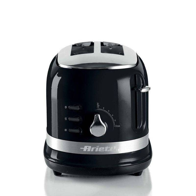 Torradeira Moderna 220V Ariete PretaTorradeira Elétrica 2 Fatias Linha Moderna ArieteDesign requintado, linhas harmoniosas e tostagem perfeita do pão. A torradeira elétrica Ariete Moderna está equipada com pinça para torrar perfeitamente o pão ou sanduíches recheados, e também pode ser utilizada sem pinça, graças à ejeção automática das fatias. Com a torradeira da linha Moderna, você pode torrar 2 fatias de pão ao mesmo tempo e selecionar até 6 níveis diferentes de tostagem, escolhendo assim o grau de crocância que preferir. Além disso, a torradeira conta com 3 funções: cozinhar, aquecer e descongelar. Descubra todos os produtos da coleção e complete sua cozinha com funcionalidade e design exclusivo da Linha Moderna de Ariete.Especificações do ProdutoIncríveis 6 níveis de tostagem3 funções: Cozinhar, descongelar e reaquecerBandeja de migalhas removívelCentralização de fatiaEjeção automática de fatiasCompartimento de armazenamento de cabosFicha TécnicaCódigo: 4083190052Marca: ArieteModelo: ModernaConteúdo da embalagem: 1 TorradeiraMaterial: Aço InoxVoltagem: 220VPotência: 750WCor: PretoPeso: 1,66 kgDimensões: 29 x 19 x 21 cm (AxLxP)Garantia: 12 mesesCertificação Inmetro: BRA24/00669Sobre a MarcaA Ariete é uma marca italiana fundada em 1964, com sede na Toscana. Conhecida pela criatividade e inovação, a Ariete se destaca por seus produtos diferenciados, projetados de forma criativa e com investimentos significativos em pesquisa e desenvolvimento. A marca oferece uma linha de produtos como liquidificadores, sanduicheiras, raladores elétricos, aparelhos de limpeza e muito mais. Atualmente, a Ariete expande sua presença no Brasil, oferecendo produtos renovados e pensados para o mercado brasileiro, mantendo sempre a qualidade europeia.