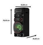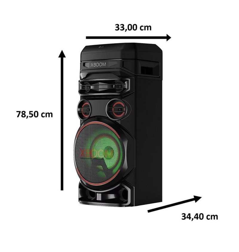 Som poderoso e graves profundosA Torre de Som Acústica LG XBOOM RNC7 oferece um som potente com graves profundos graças à sua tecnologia de duplo boost. Sinta a força e a clareza do áudio que transformam qualquer ambiente em um espaço vibrante, com graves que reverberam e agudos nítidos, proporcionando uma experiência sonora imersiva.Recursos de performance e entretenimentoIdeal para eventos ao vivo, a LG XBOOM RNC7 possui entradas para microfone e guitarra, além de conectividade USB e rádio para reprodução de músicas. Seus recursos de karaokê permitem ajustar o volume do microfone, reduzir vocais e adaptar a música à sua voz, enquanto a função DJ e o aplicativo LG XBOOM oferecem controle total sobre efeitos sonoros e iluminação.Iluminação e conectividade avançadaA iluminação de LED colorida da LG XBOOM RNC7 sincroniza com a música, criando um espetáculo visual. A função Party Link permite conectar duas caixas acústicas sem fios para ampliar a potência do som. Com o aplicativo LG XBOOM, você pode personalizar equalização, iluminação e criar playlists, tornando cada festa única e animada.