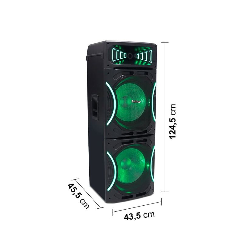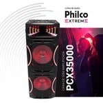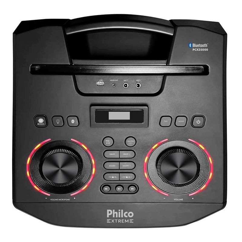 Som potente para festas inesquecíveisTransforme suas festas com a Torre de Som Amplificada Philco PCX35000! Com impressionantes 3500W de potência, ela é equipada com dois woofers de 15” e um tweeter, garantindo graves intensos e uma qualidade de som que vai agitar qualquer evento.Conectividade e versatilidadeA conectividade da Caixa de Som Philco é uma das suas grandes vantagens. Com tecnologia Bluetooth 5.3, você pode reproduzir suas músicas favoritas a até 10 metros de distância, sem interferências. Além disso, a possibilidade de conectar outras caixas Philco potencializa ainda mais a diversão, tornando suas festas mais animadas. Com entradas variadas como auxiliar, USB e suporte para cartão SD, você nunca ficará sem opções de reprodução.Luzes e funções extras para agitar o ambienteEquipada com Flash Lights personalizáveis, suas festas ganharão um toque especial, com cores e luzes que dançam ao ritmo da música. O recurso Ex Bass permite ajustar a intensidade dos graves, proporcionando a trilha sonora perfeita para cada momento. Com controle de volume e eco para microfone, você estará sempre pronto para animar a pista de dança!