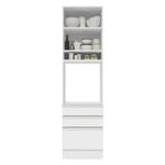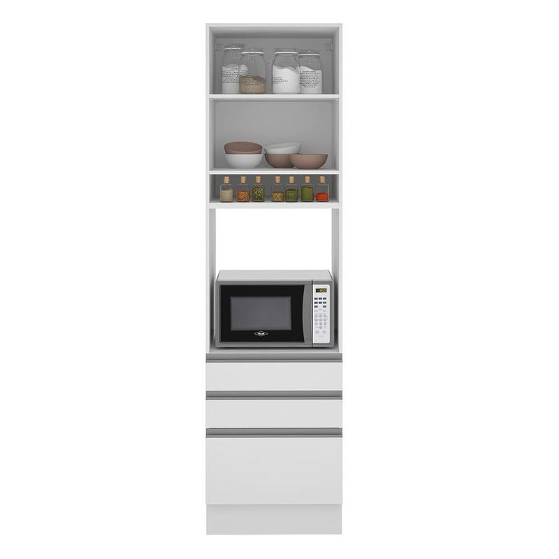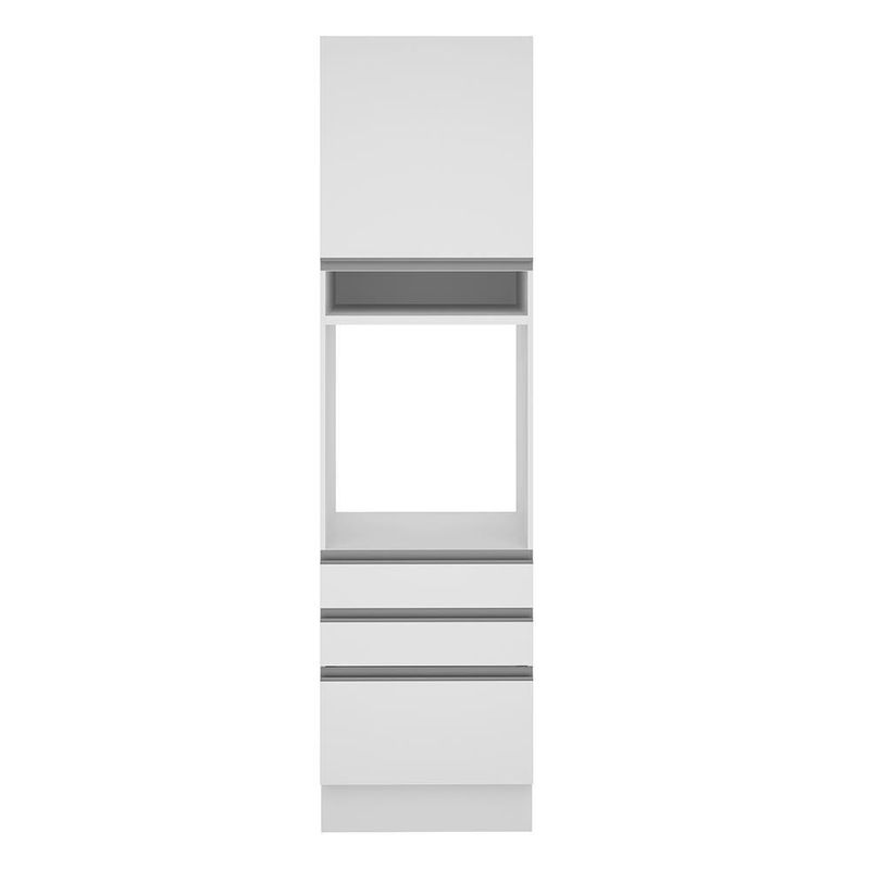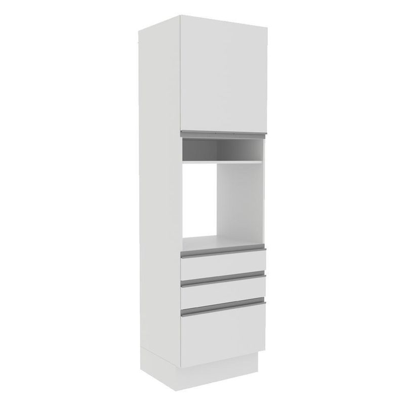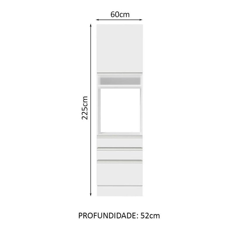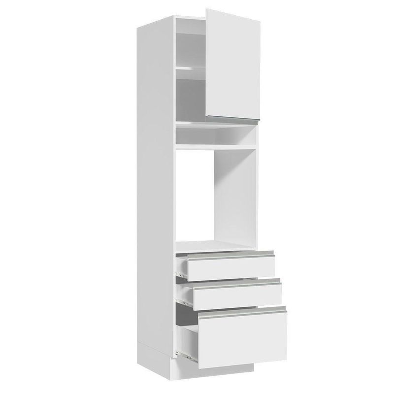 Torre Quente de Forno Glamy 1 Porta 3 Gavetas Branco MadesaProcurando um módulo de cozinha que ofereça praticidade, qualidade e total aproveitamento de espaço?Características:- Este armário conta com 3 gavetas muito espaçosas, sendo uma mais profunda, todas com corrediças telescópicas que possibilitam abertura total das gavetas.- Possui também uma porta convencional que utiliza dobradiças metálicas com amortecimento para o fechamento suave.- Para o bom aproveitamento interno há uma prateleira ideal para armazenar mantimentos.- Além disso, possui um nicho decorativo para deixar itens do dia-adia a mão.- Os pés são em PVC com regulagem de altura e rodapé removível de madeira de fácil encaixe.- Este módulo precisa ser fixado na parede.- O acabamento interno e externo é branco, em Pintura Poliéster com 7 camadas protetoras que aumentam a resistência e durabilidade do móvel.- A pintura é ecológica, isenta de vapores que vão para a atmosfera.- A linha de cozinhas Glamy é totalmente modulada.- É possível combinar este armário com outros módulos disponíveis na linha, inclusive combinando diferentes cores.Especificações Técnicas: - Marca: Madesa- Referência: G2665509GL- Cor: Branco- Estrutura: 1 Porta; 1 Prateleira Interna; 2 Nichos Externos; 3 Gavetas- Dimensões do Produto (LxAxP): 60 cm x 225 cm x 52 cm- Itens Inclusos: 1 Torre Quente- Dimensões da Embalagem (LxAxP): 62 cm x 18,5 cm x 215 cm- Peso da Embalagem: 60,9 kgGarantia: 3 meses