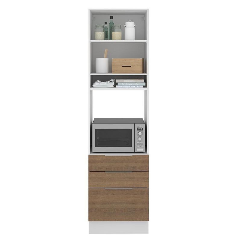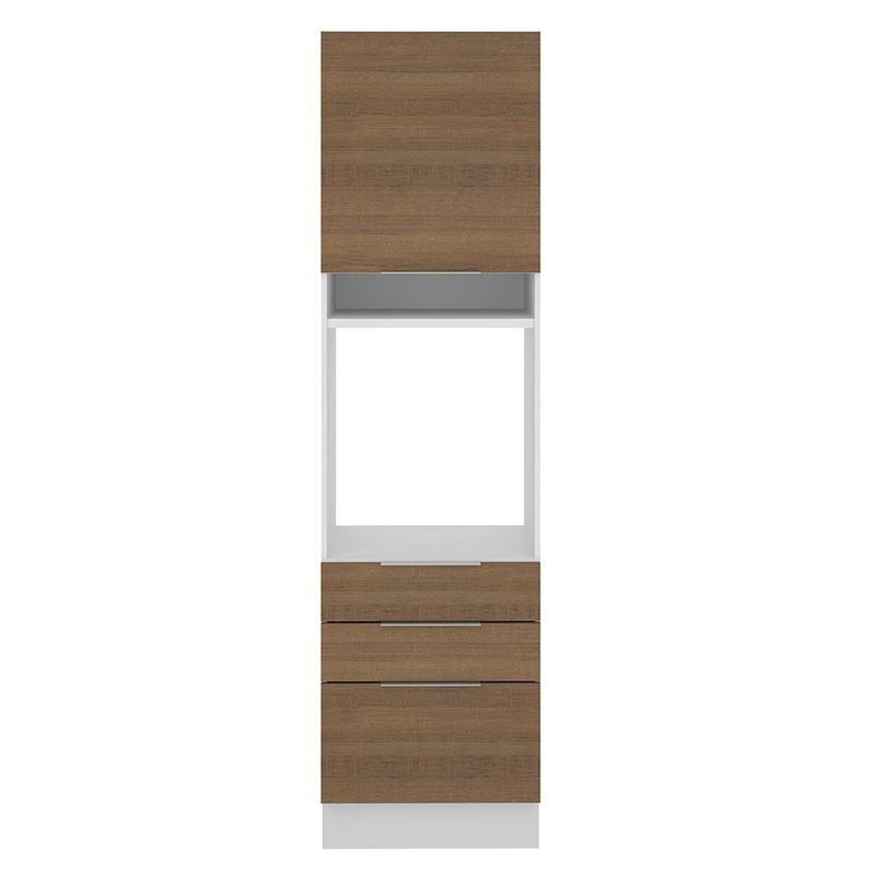 Torre Quente Stella 1 Porta 3 Gavetas Branco/rustic MadesaCor: MarromGarantia: 3 Meses Contra Defeitos de FabricaçãoDimensões - Altura: 225 CmDimensões - Largura: 60 CmDimensões - Profundidade: 52 CmProduto: Torre QuenteMarca: MadesaPeso Aproximado: 61 KgMaterial: MdpLinha: StellaRbn: Móveis/móveis de Cozinha/armários de CozinhaMaterial Para Filtro: MdpEstado de Origem: RsTempo de Entrega do Fornecedor: 1Tonalidade: MarromConteúdo da Embalagem: N/iInstruções/cuidados: N/iA Torre Quente de 60 cm da linha de cozinhas Stella da Madesa conta com três gavetas espaçosas, sendo uma mais profunda, todas com corrediças telescópicas que possibilitam abertura total.Possui também uma porta convencional que utiliza dobradiças metálicas com amortecimento para o fechamento suave e a divisão interna é feita por uma prateleira, com ótimo espaço para organizar os utensílios da cozinha.O espaço para forno é de 63 cm x 57 cm com abertura para saída do calor. Além disso possui um nicho decorativo para deixar itens do dia a dia mais a mão. Os pés são em PVC com regulagem de altura e rodapé removível de madeira de fácil encaixe.O acabamento interno e externo é branco. A porta e ad frentes são no padrão amadeirado Rustic. O processo é feito em Pintura Poliéster ecológica de alta resistência, que conserva a beleza do móvel por mais tempo.Esta torre pode ser combinada com outros módulos e com todas as cozinhas da linha Stella.Itens inclusos:- Uma (1) Torre quente de 225 cm de altura x 60 cm de largura x 52 cm de profundidade com uma (1) porta, uma (1) prateleira interna, dois (2) nichos externos e três (3) gavetas.Código do produto: G266559BTEMarca: MADESAGarantia: Garantia de 3 meses contra defeito de fabricação