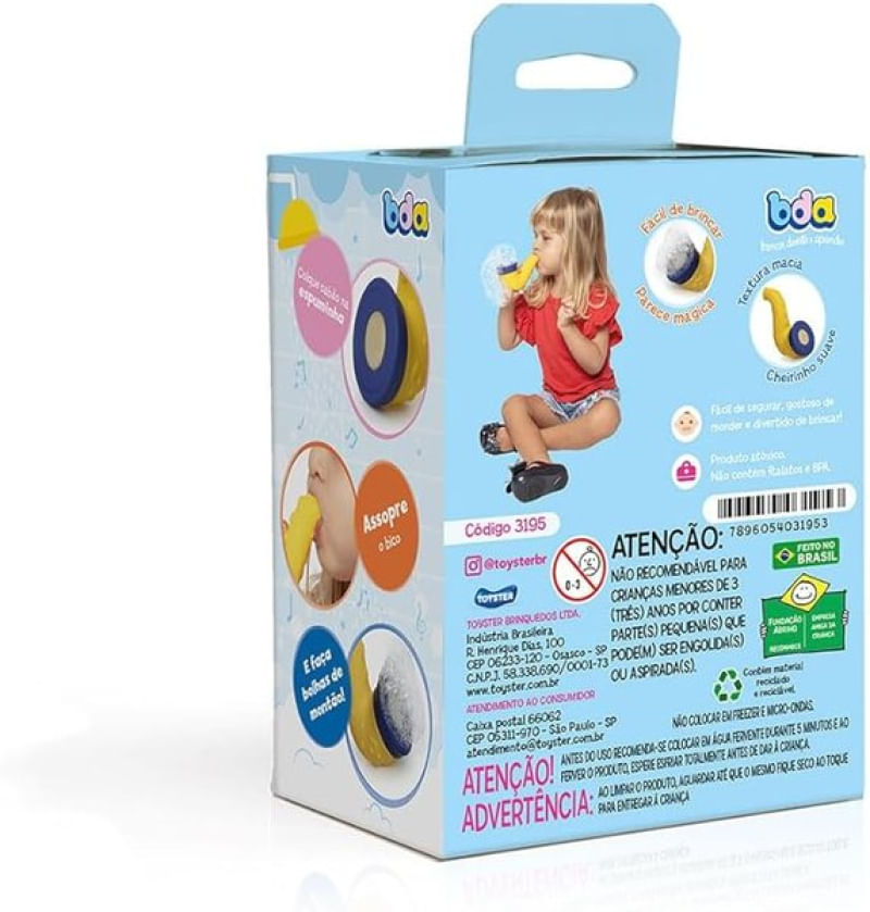 Toyster - Espuminha - Brinquedo de banho - BDA - Assopre e divirta-se com as bolhas! Texturas macias! Coloque sabão na espuminha, assopre o bico e faça bolhas de montão! Divirta-se no banho com esse brinquedo de fazer espuma! Características Gerais do Produto: • Faixa Etária: +3 • Faixa Etária: 1 a 5 anos de idade • Marca: Toyster • Material: Plástico Acompanha o produto: • 1 Espuminha de banho. Garantia: • 7 dias de garantia