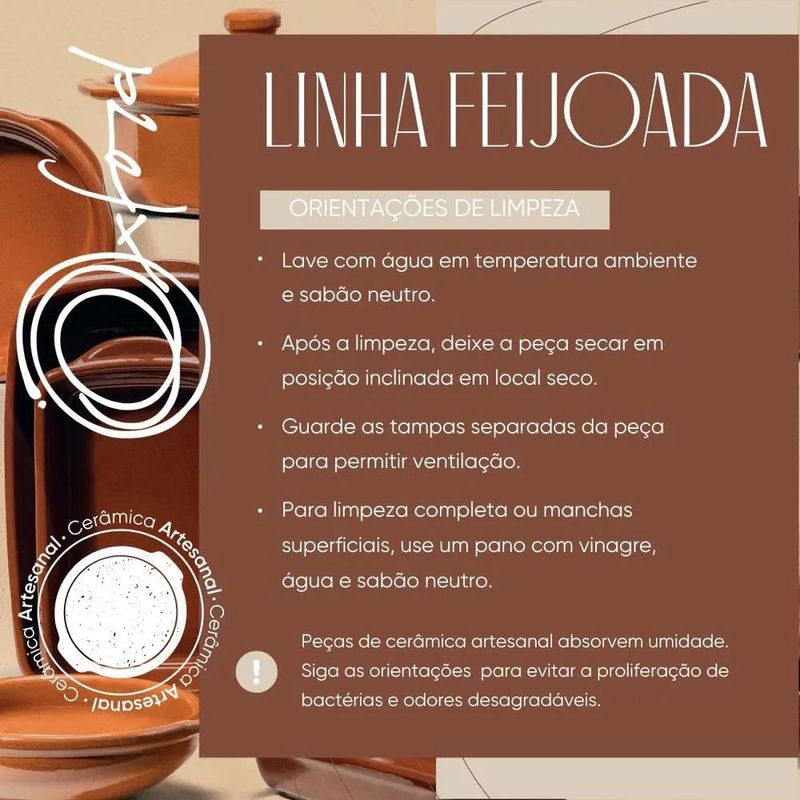 Sirva a tradicional feijoada e seus acompanhamentos com o charme da Travessa da linha Feijoada. Feita em cerâmica artesanal, esta peça foi projetada para levar o toque rústico e acolhedor de um prato tão brasileiro à sua mesa. As abas facilitam o manuseio, e o acabamento vítreo garante uma limpeza completa e segura. A decoração em tom terracota reforça o estilo rústico da peça, que é ideal para servir a família e os amigos. A travessa pode ser utilizada no forno, em temperaturas de até 250°C. Com 24,5 cm de comprimento e 635 ml de volume, ela é perfeita para porções generosas de carne, linguiça ou torresmo. Especificações do Produto: Comprimento: 24,5 cm Altura: 4,5 cm Volume: 635 ml Material: Cerâmica Artesanal Cor: Terracota Funcionalidade: Exclusiva para servir, pode ir ao forno (até 250°C) Garantia: 90 dias (defeitos de fabricação) EAN: 7891361444953
