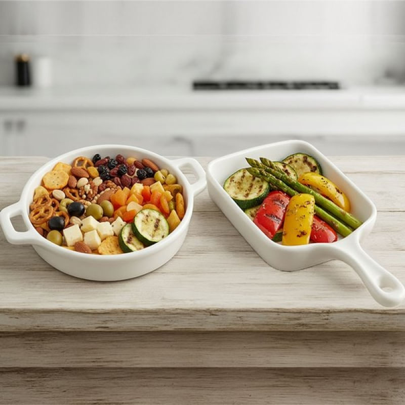 Travessas Petisqueiras Assadeiras Cerâmica Servir Jogo 2pçs - Eleve a apresentação das suas refeições com estas lindas travessas de cerâmica. Ideal para servir petiscos, sobremesas, assados leves, acompanhamentos e muito mais. Perfeita para o dia a dia e também para ocasiões especiais! Características do Produto Material: Cerâmica de alta qualidade Formatos: Redonda x Quadrada Tamanhos: Redonda 22cm x Quadrada 20cm Acabamento: Superfície lisa, moderna e fácil de limpar Resistência: Vai ao forno, micro-ondas e lava-louças Uso: Assadeira, petisqueira, travessa para servir Embalagem: 1x Travessa Redonda Em Cerâmica 22cm 1x Travessa Quadrada Em Cerâmica 20cm Características Gerais do Produto: • Material: Cerâmica • Modelo: Jogo De Travessas • Cor: Branco • Dimensões aproximadas: Redonda 22cm x Quadrada 20cm Garantia: • Garantia do site - 1 Mês
